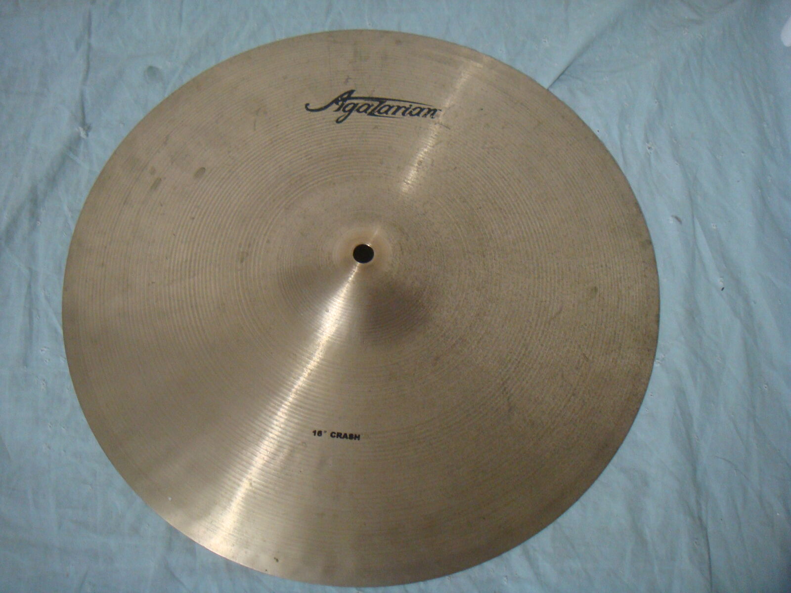 AGAZARIAN 16" CRACH CYMBAL. This is a used cymbal that's in overall good condition. It has typical wear and signs of use, but not damage or issues at all. It's a great thin crash cymbal! It comes with everything shown. This is your chance to save big-time so don't miss out!!
