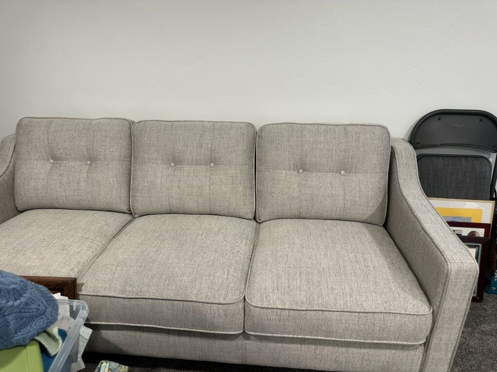 Condition: Like new — clean, no stains, no pets, smoke-free home ️ Details: • Firm, supportive cushions • Durable woven upholstery (70% poly / 30% acrylic) • Removable seat cushions for easy cleaning • Piped edges + button-tufted backs • Chestnut brown legs • Purchased from local furniture store (can show proof of purchase)