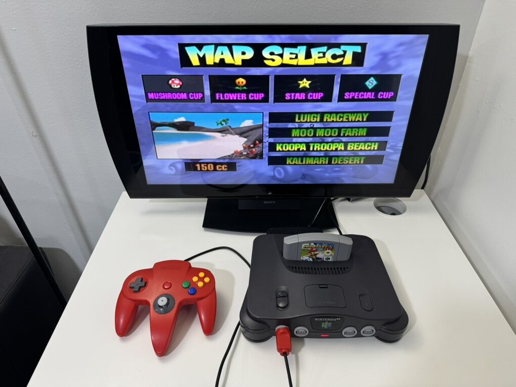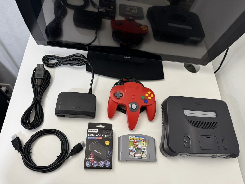 Zelle1 Nintendo 64 1 Controller 1 Repro Game (Mario Kart 64) 1 Power Cable 1 Hdmi Converter 1 Hdmi Cable 1 Av Cable
