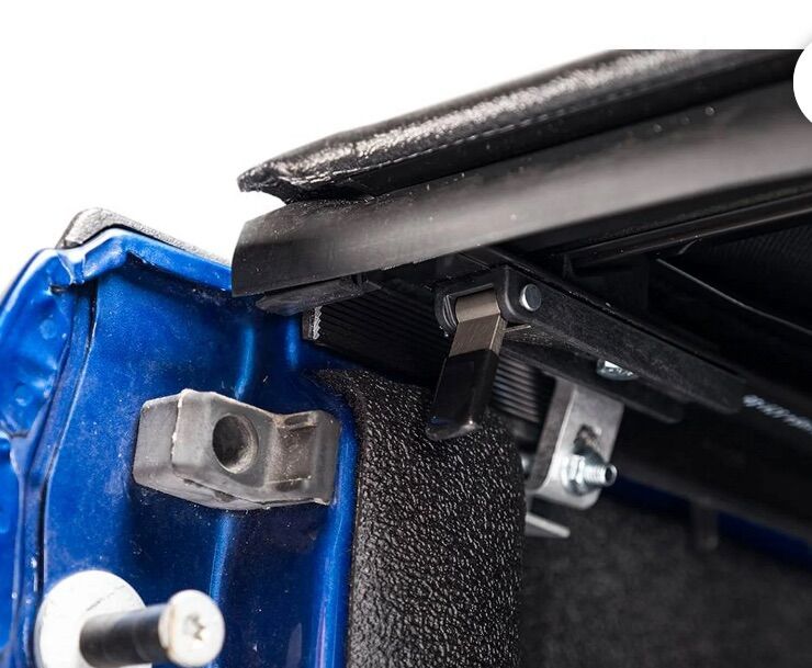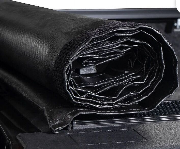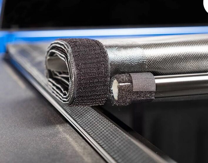 Intuitive roll-up operation • Heavy-duty marine-grade vinyl tarp • Rigid yet lightweight side rail bows • Black, leather-grained finish • Ultra low-profile • Offers complete bed access • Nylon straps secure the cover in the open position while driving • Heavy-duty rear trigger latches • Adjustable tension control keeps the tarp taught in all climates • Simple, no-drill installation