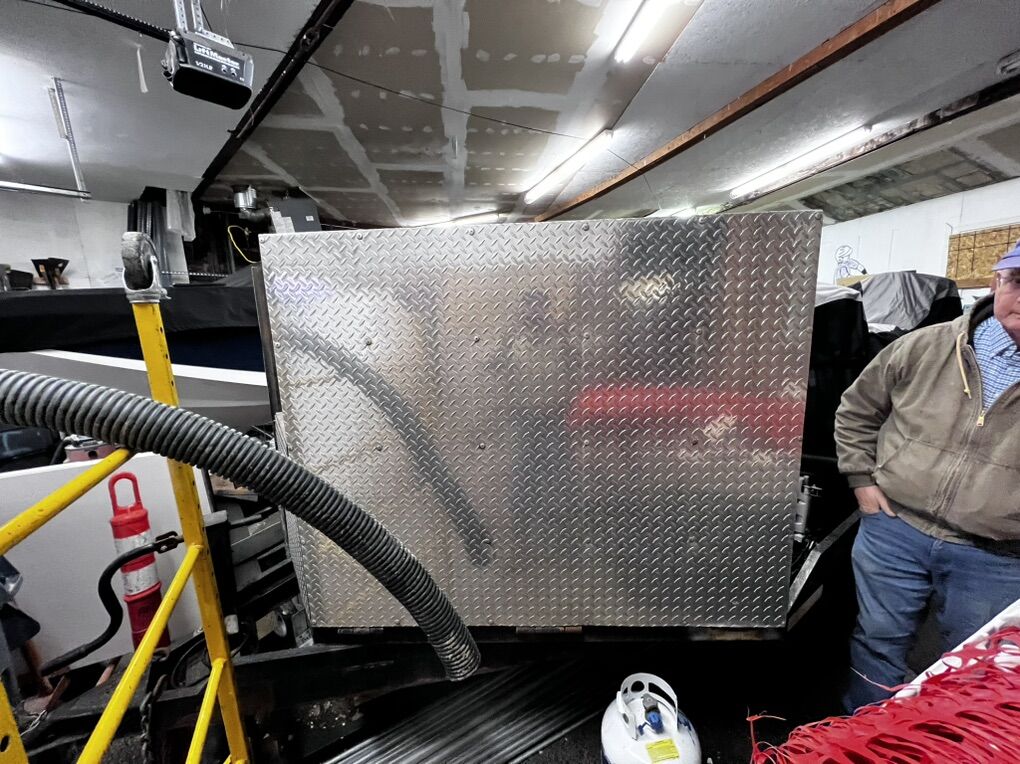 Trailer can hold 4 snowmobiles.
