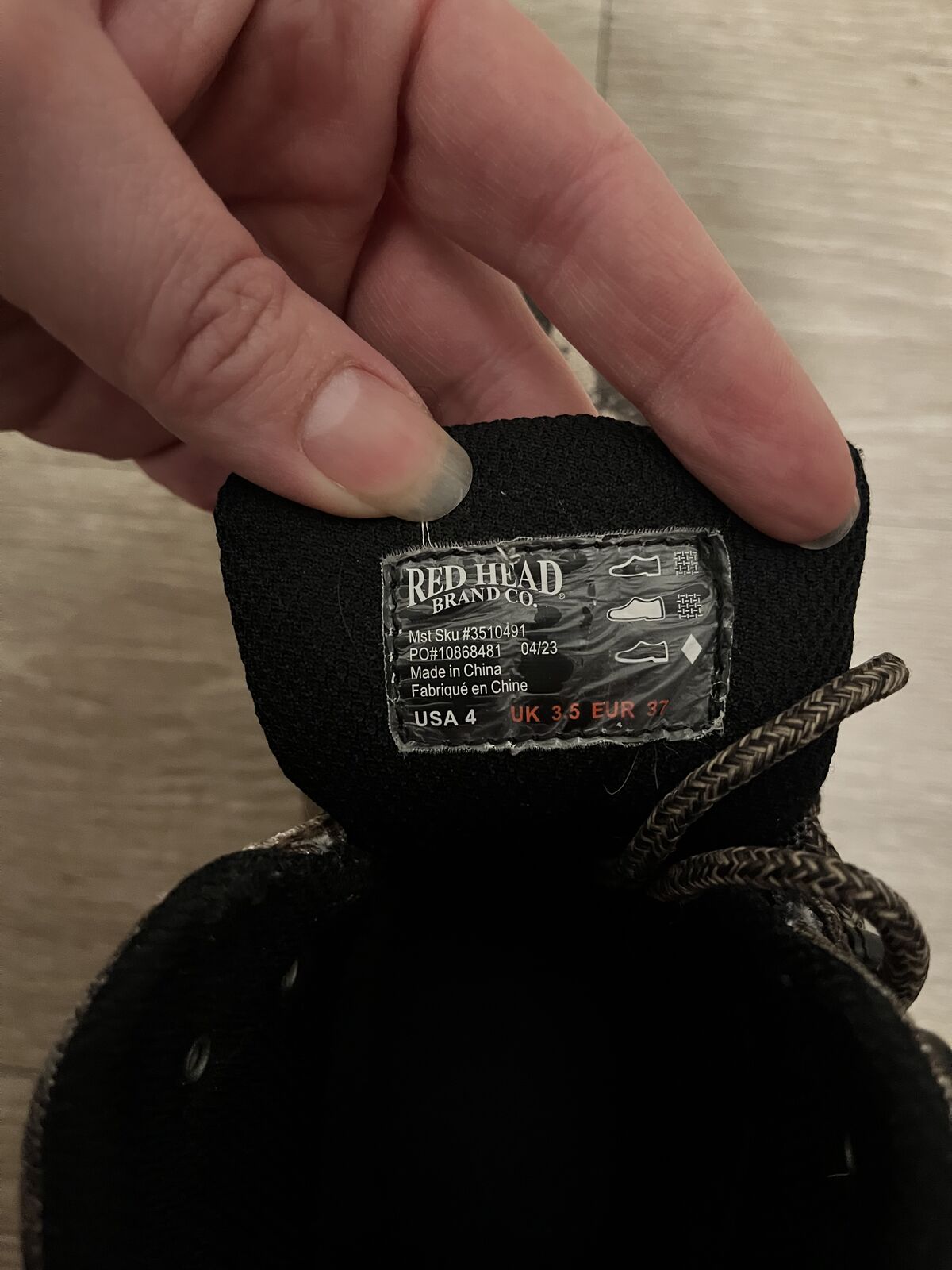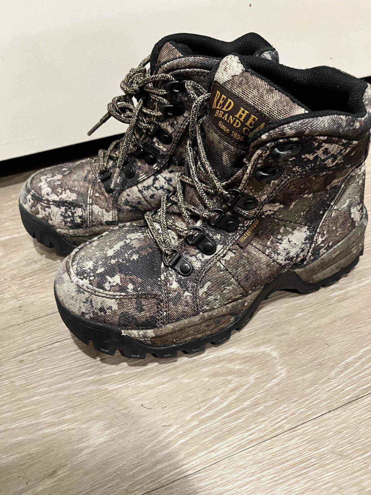 Durable camo hiking boots from Red Head Brand Co. (Cabela’s), youth size 4. Rugged soles and waterproof design. Great for outdoor adventures.