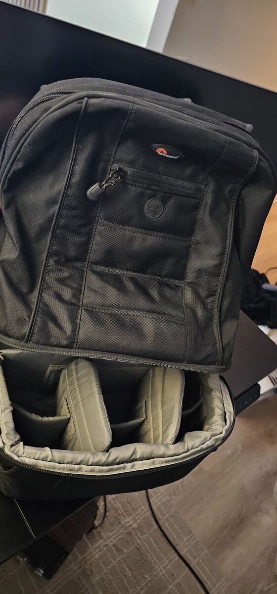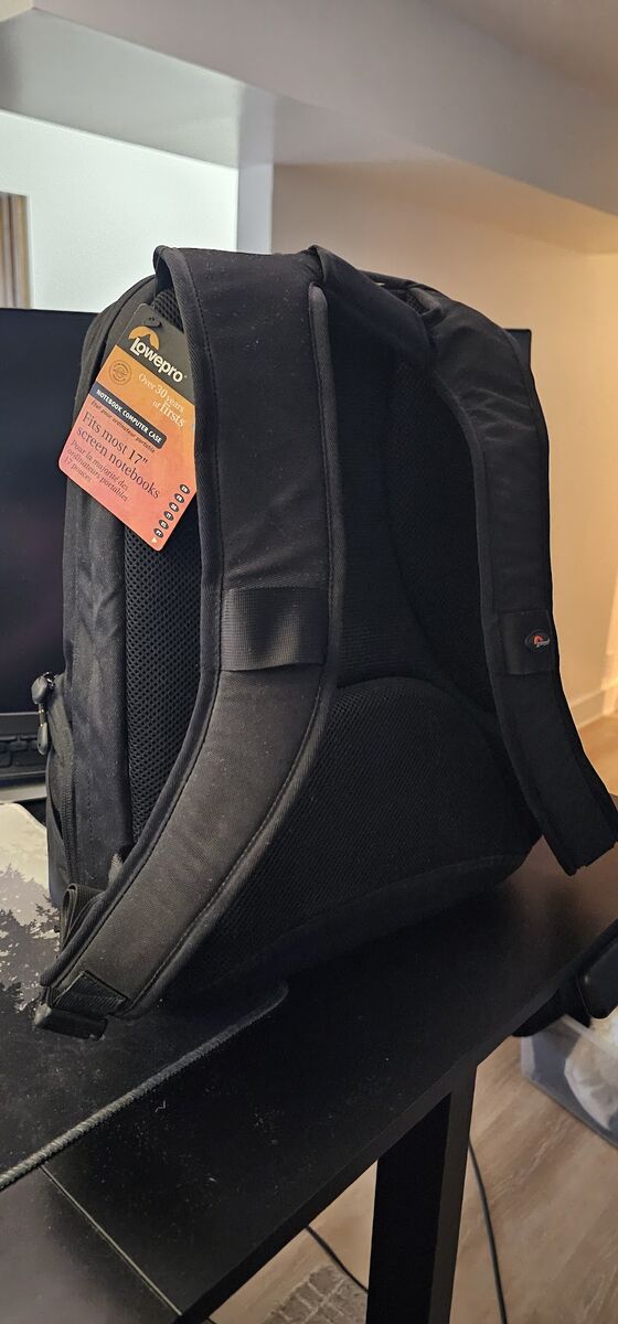 The Lowepro CompuDaypack is a lightweight yet spacious backpack made to carry and protect a 17" notebook computer and files and a digital SLR camera with a lens attached (up to a 105mm f/2.8), plus 2-3 additional lenses, flash and accessories. The pack is made from water-resistant 840 and 600 denier ripstop nylon with high-density, closed-cell foam interior. There is a padded rear notebook computer compartment that protects the computer against sudden impacts, a padded camera compartment with adjustable dividers that protects the camera body and lenses from impact and a top accessory compartment that provides quick, organized access to personal and digital accessories. A No Drop gusset keeps the backpack upright.