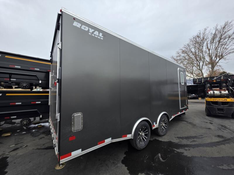 WIDTH: 8' LENGTH: 24' (20' + 4') DOOR(S)/RAMP(S): Ramps WEIGHT: 3706 lb GVWR: 13228 lb PAYLOAD: 9522 lb AXLE(S): Tandem Axle COUPLER: 2 5/16"\