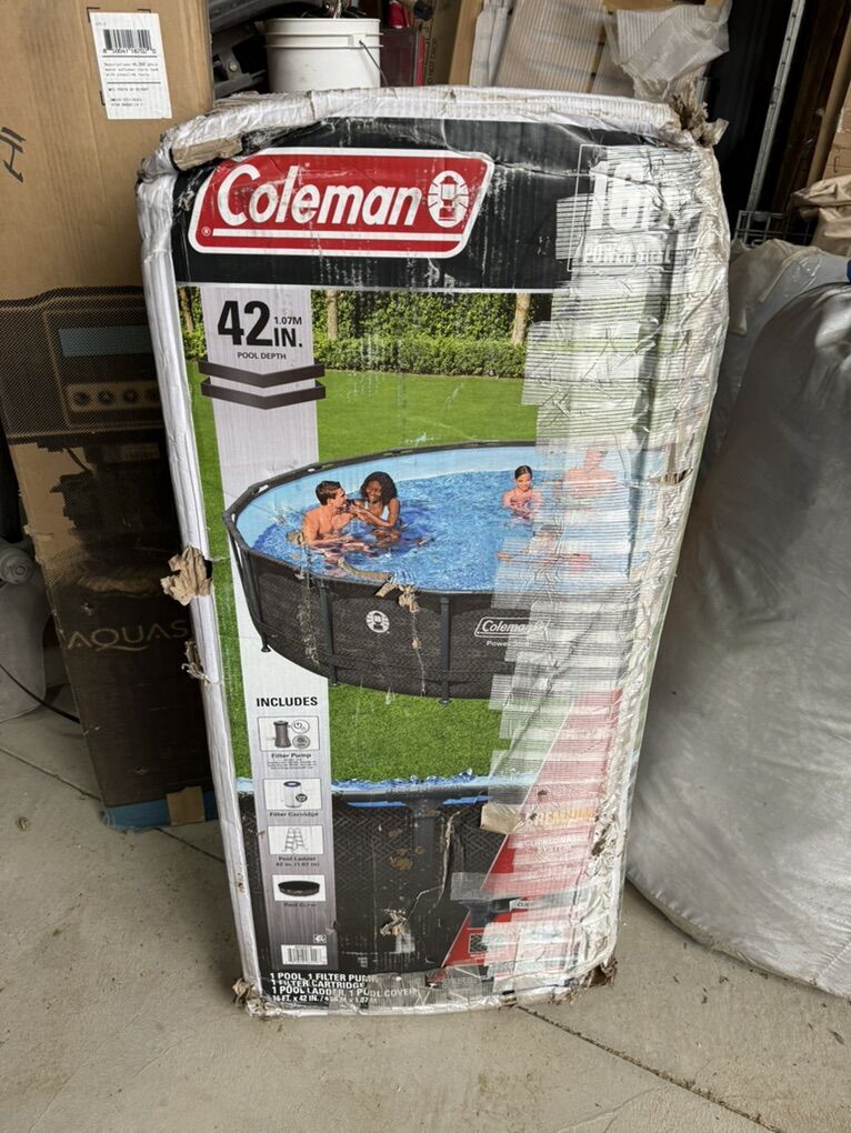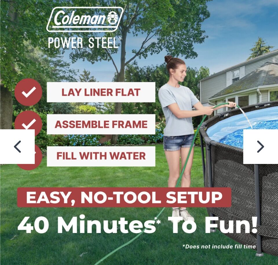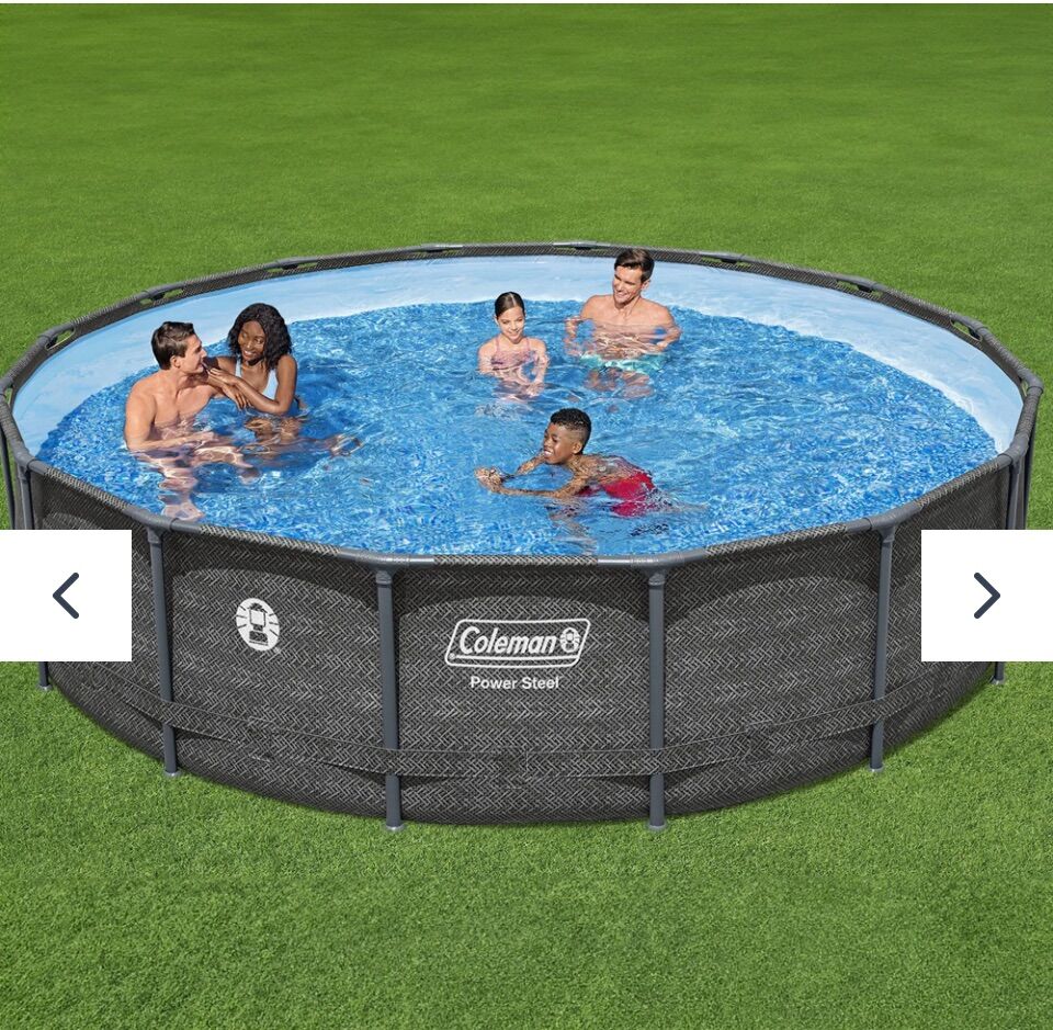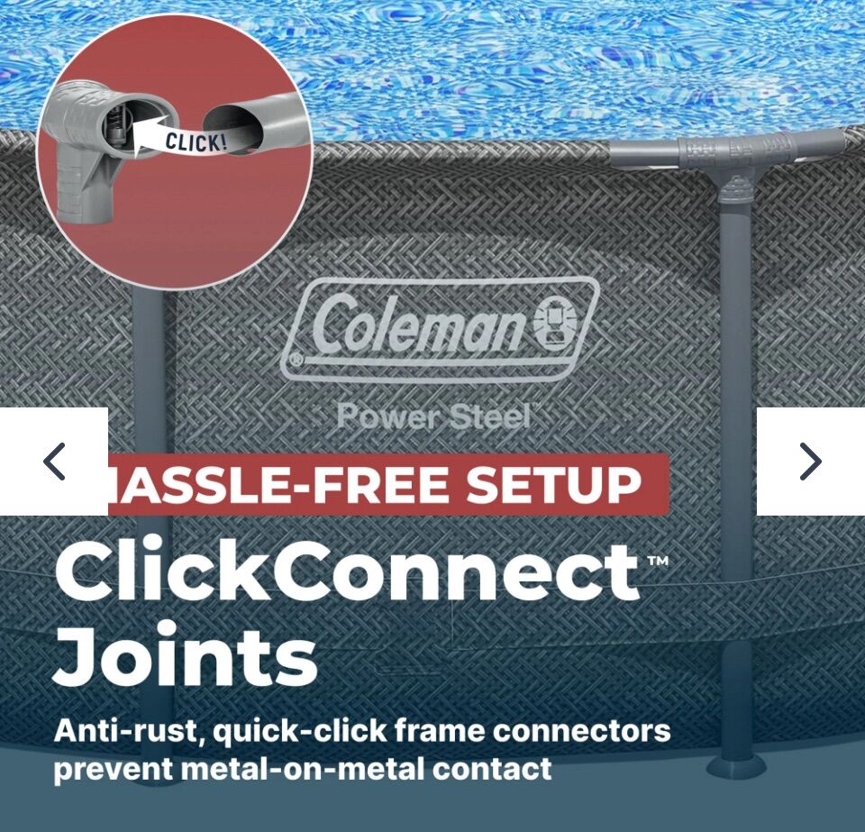 Kick off the summer with an above ground pool in your backyard, ready to swim and splash the day away! Durable Construction: The Coleman® Power Steel® Above Ground Pool is easy to set up and built to last. The durable pool frame is constructed with superior corrosion resistant steel to ensure stability and longevity. The ClickConnect System™ of frame connectors makes setting the pool up a breeze, with no additional tools or accessories needed. Quickly click each support piece into place for a safe and secure connection. The frame connectors also prevent metal-on-metal contact to ensure corrosion and rust resistance. The sturdy Tritech® liner is made out of an ultra-durable 3-layer material that is reinforced for strength and puncture-resistance. Tritech is 15% more tear resistant, 33% more stretch resistant and 83% more puncture resistant than standard PVC, ensuring your pool will last summer after summer. Additional Features: This above ground pool set also comes stocked with a filter pump, a ladder and a pool cover. Your family will love spending the day in this Power Steel pool! Size: 16 ft. x 42 in. (4.88 m x 1.07 m) Water Capacity (90%): 4,491 gal. (17,000 L) Tritech® enhanced 3-layer liner is 15% more tear resistant, 33% more stretch resistant and 83% more puncture resistant than standard PVC Corrosion-resistant, galvanized steel frame is held together with ClickConnect™ joints, featuring quick-click connectors 1,000 gal. (3,785 L) filter pump included Easy, no-tool setup and takedown process Contents: 1 pool, 1 filter pump, 1 Type III filter cartridge, 1 ladder, 1 pool cover, repair patch