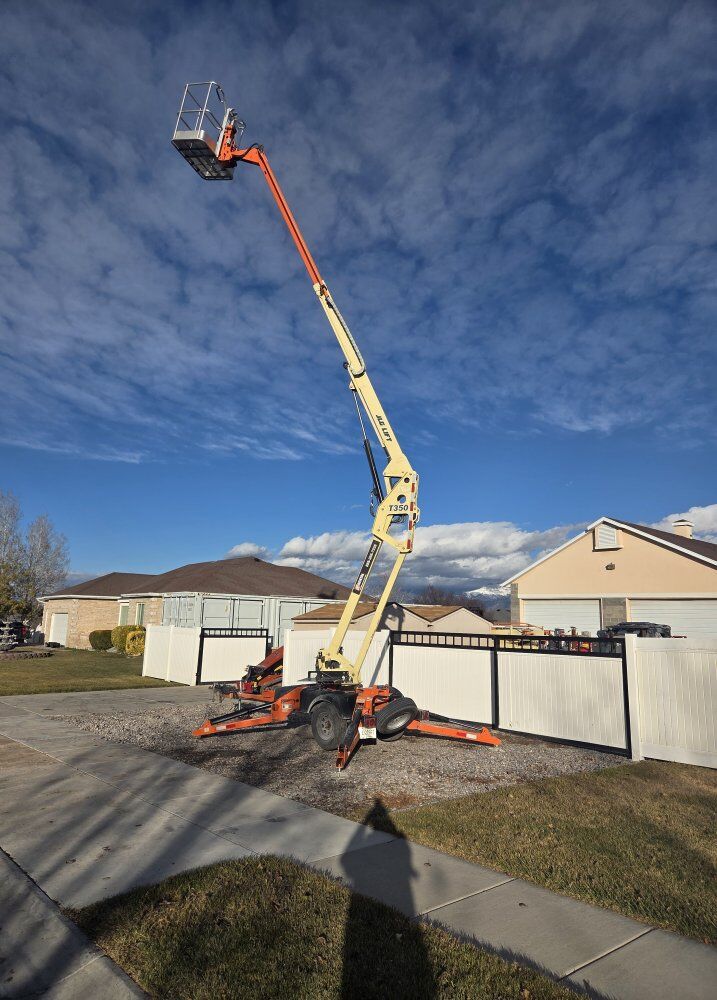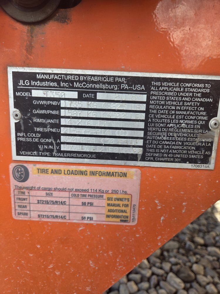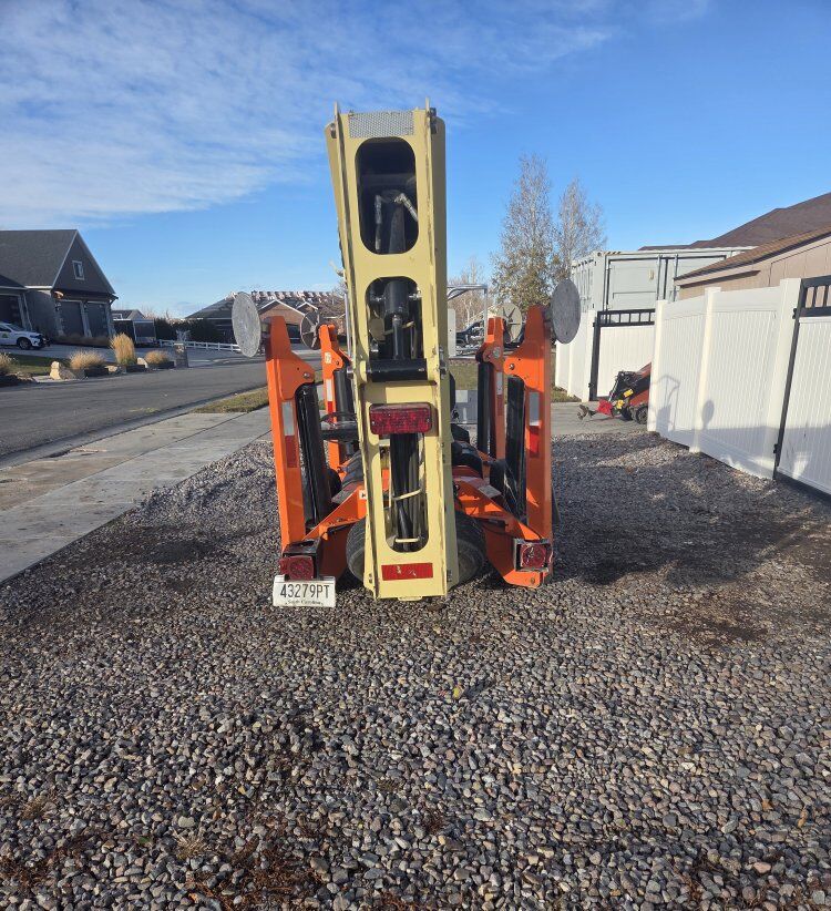 JLG T350 towable boom lift with 140hrs. Platform Height: 34 ft 5 in. Working Height: 40 ft 5 in. Horizontal Outreach: 20 ft 2 in. Platform Capacity: 500 lb Machine Weight: 3,400 lbs or 3,600 lbs Towing Speed Rating: 65 mph Platform Dimensions: 30 x 48 inches Outrigger Footprint Width: 10 ft 5 in. Ground Clearance: 1 ft 2 in. Swing: 410 Degrees Non-Continuous Standard Features: Auto-leveling hydraulic outriggers, 110V-AC receptacle in the platform, proportional controls, air and water lines to the platform. It also features an onboard charging system.