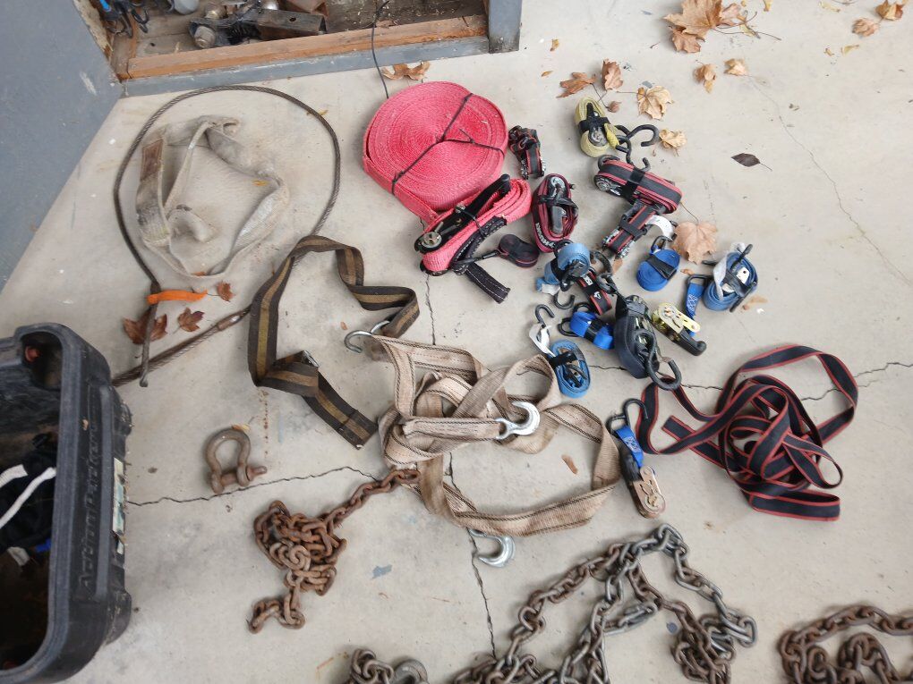 tie down straps, tow straps and chains, bungy cords. 100$ or best offer. willing to part out. make offer