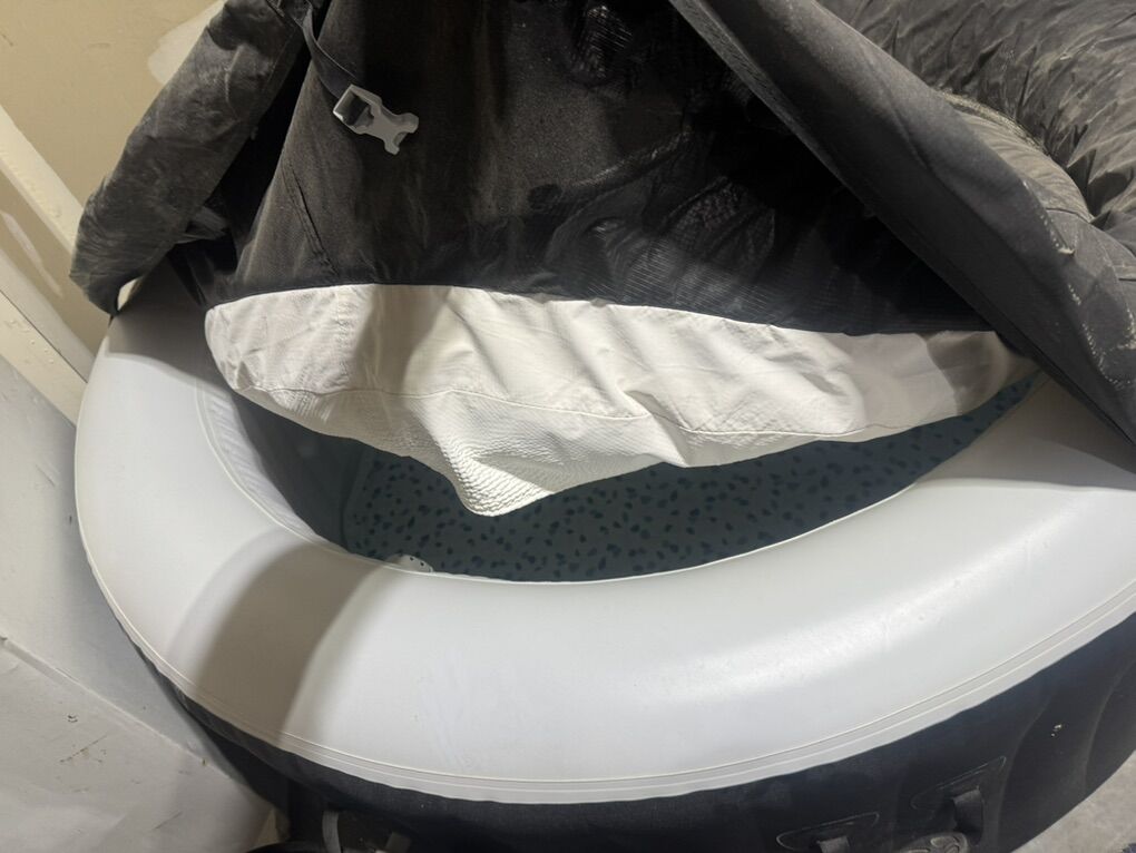 VenmoThis poor person hot tub is used. I bought a new aerator and pump motor for it a year ago is still works. There is a small leak underneath of the pump motor. I believe it’s probably just a small O-ring. I just don’t have time to fix it and I need the room
