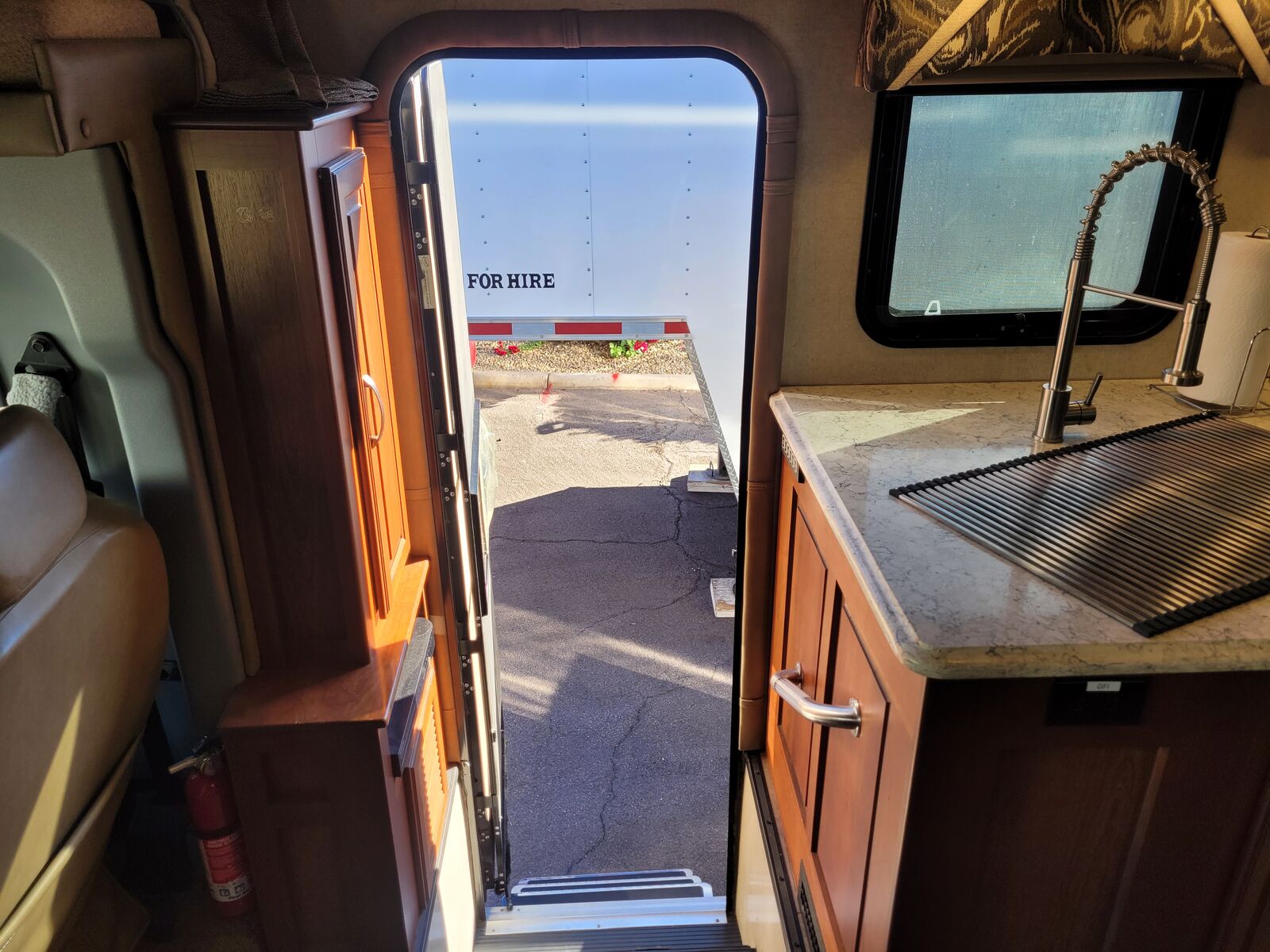 Driver and passenger air ride leather seats that swivel