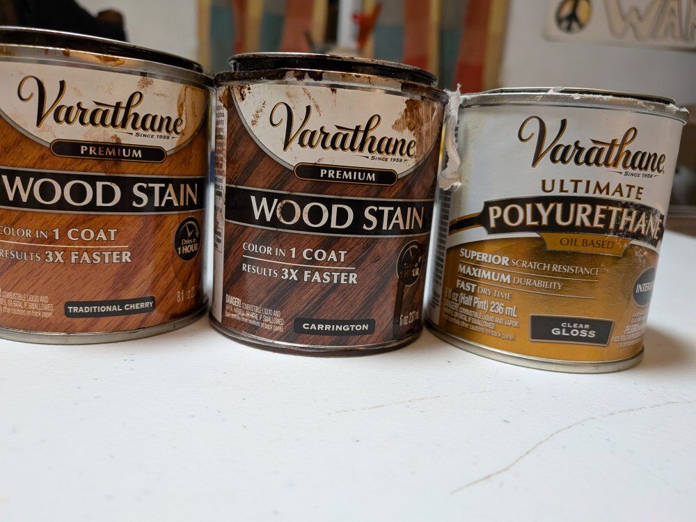 I used these different colors stain , Brush , Sand Paper no longer need them.. take everything in the box