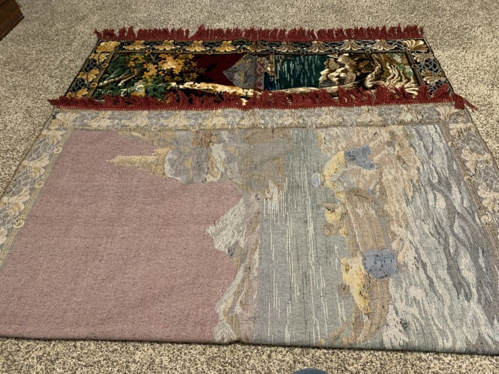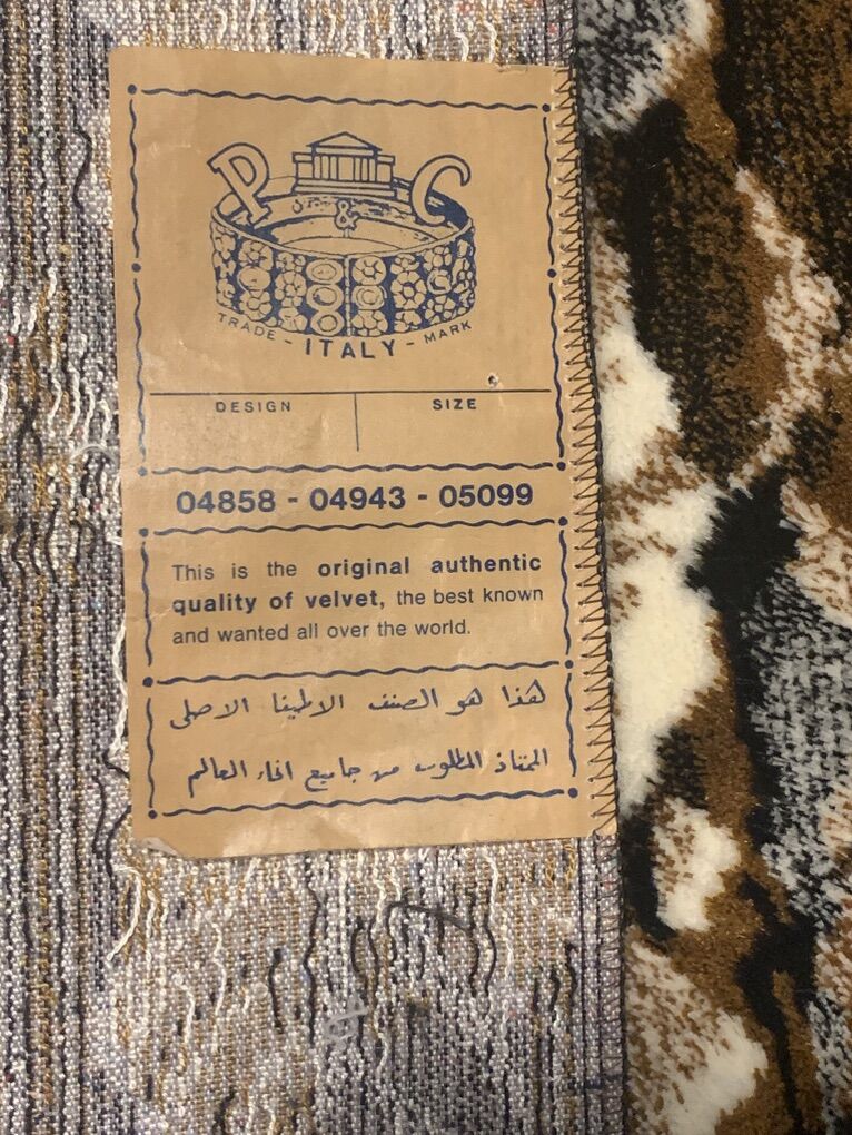 Beautiful P&C velvet wall rug, made in Italy. Rug is about 40 years old and is in excellent condition. 72” x 48” (plus 3” fringe on each side)