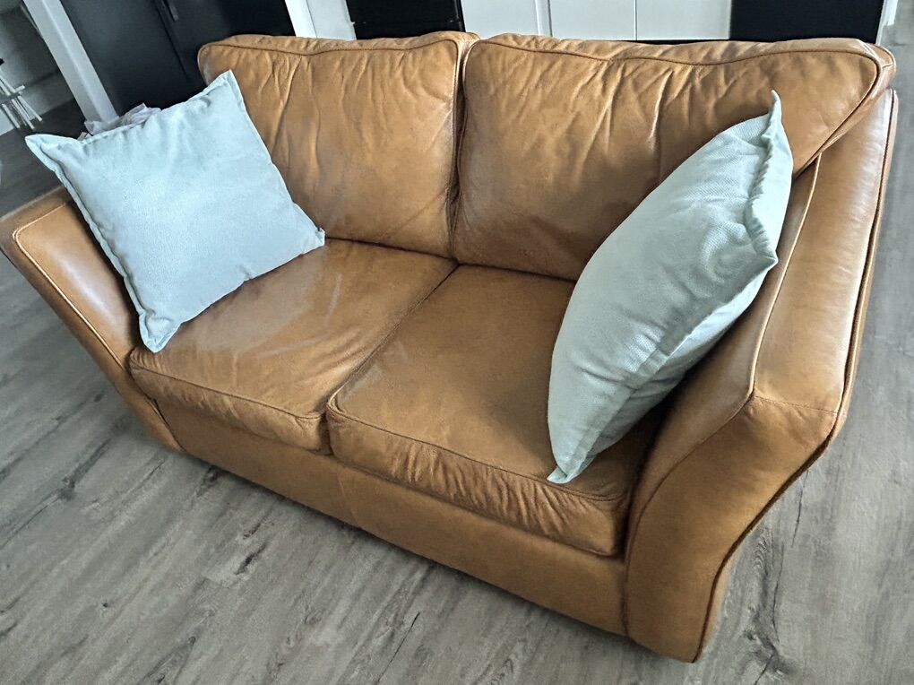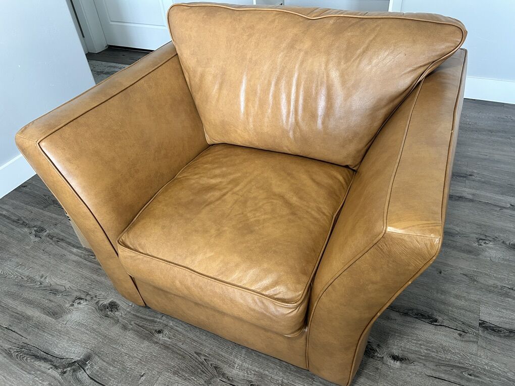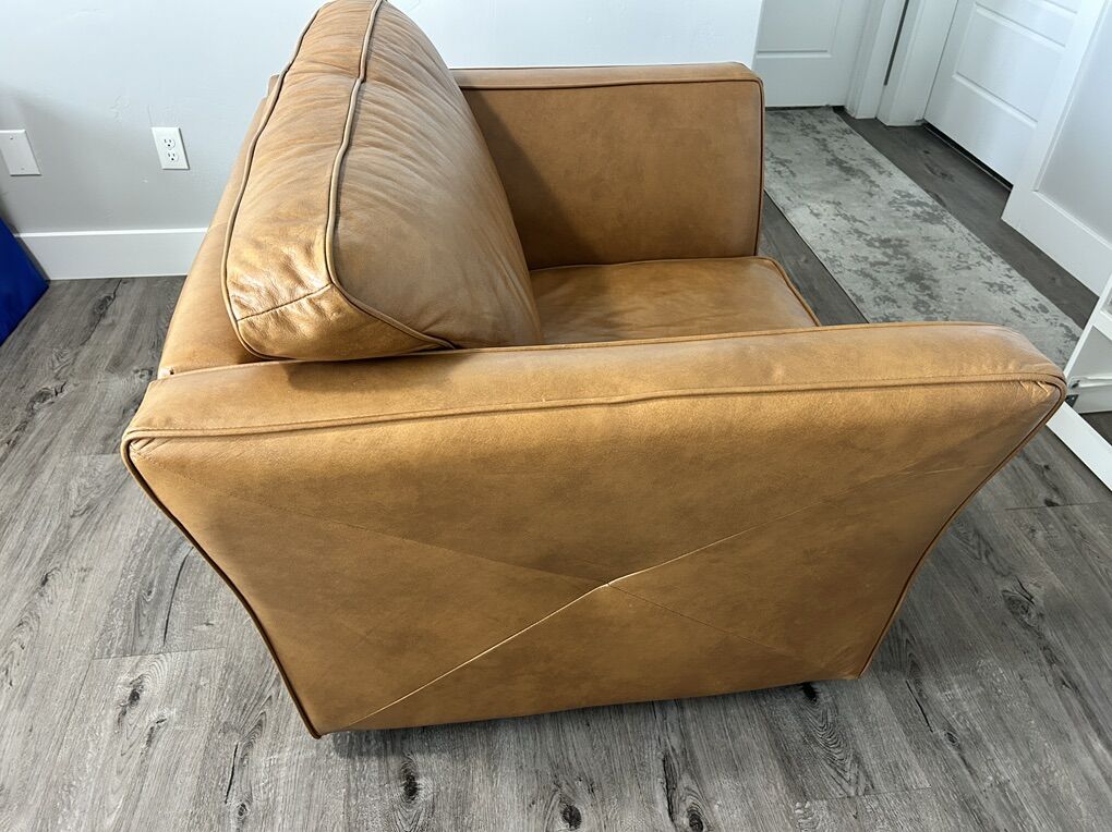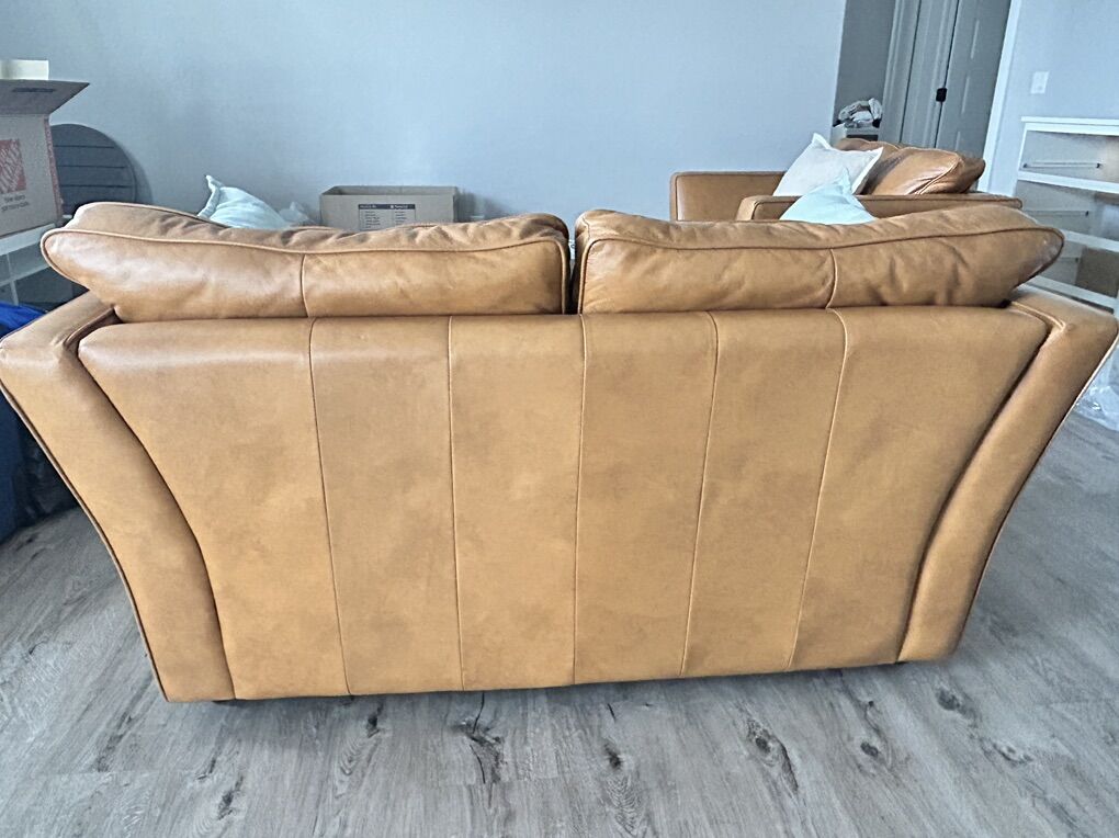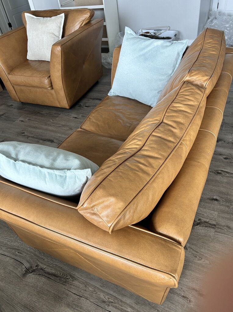 ZelleSet of two living room honey leather couch and armchair. Perfect for any interior decoration color palette.