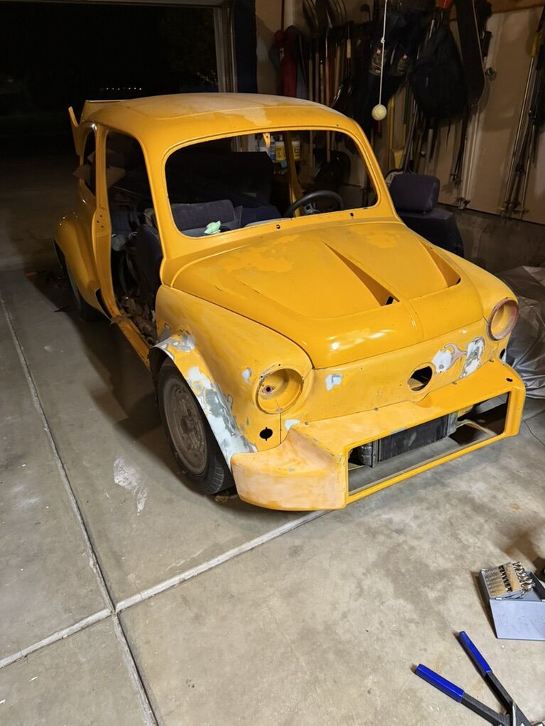 VenmoI’m realizing that I don’t think I’ll ever finish this project and I should stop putting money into something I’m probably never going to finish. This is a 68? Fiat 600d that was converted to an abarth 1000 years and years ago. It used to be a race car and that was my plan but with a little spice. I’ve began the process of adding a mercury 140 6 cylinder two stroke to the back. All the complex fab work is done. It just needs to be wired and plumbed up to be ran. It’s still a large project but a lot of the hard stuff is done or most of the way. I have a ton of parts, tons of oem, aftermarket, and custom parts for this car.