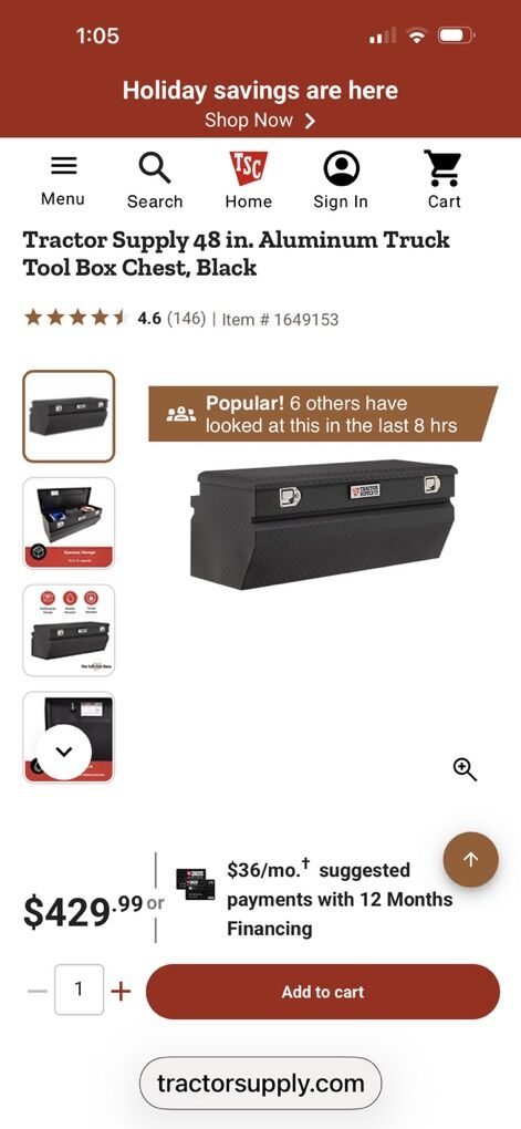 Tractor Supply 48 in. Aluminum Truck Tool Box Chest, Black