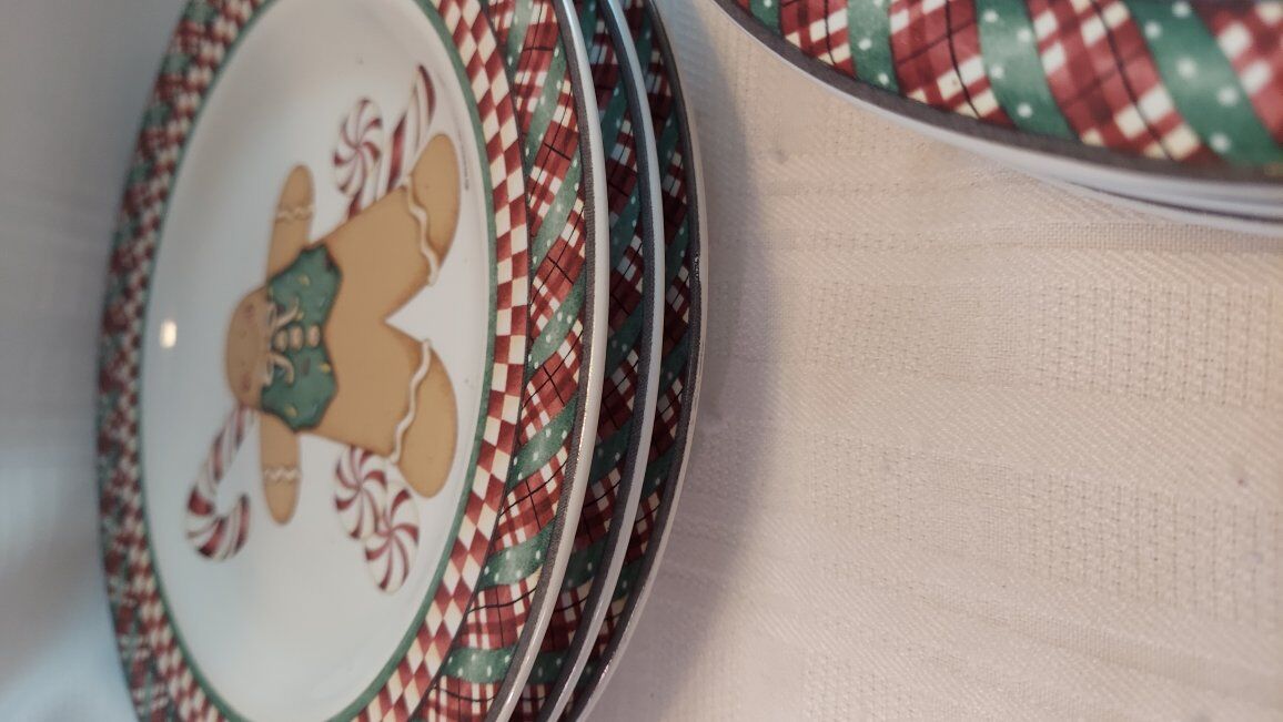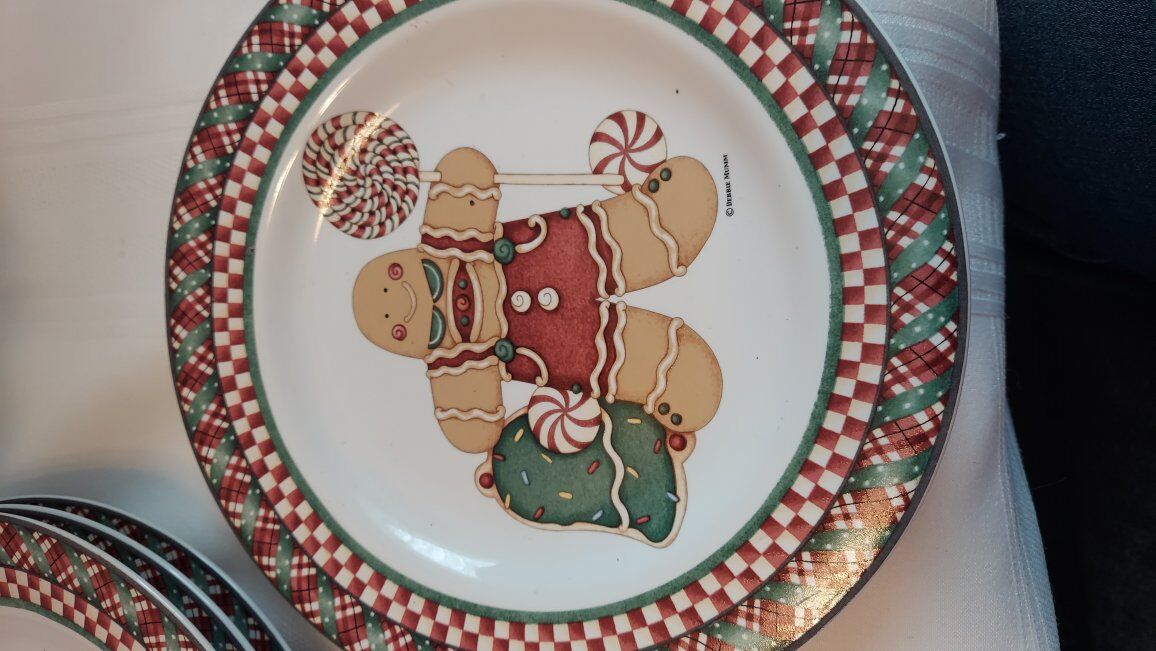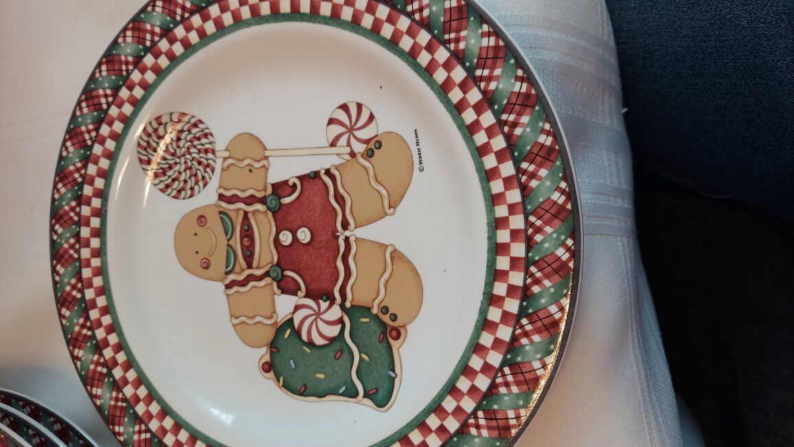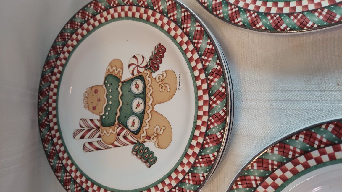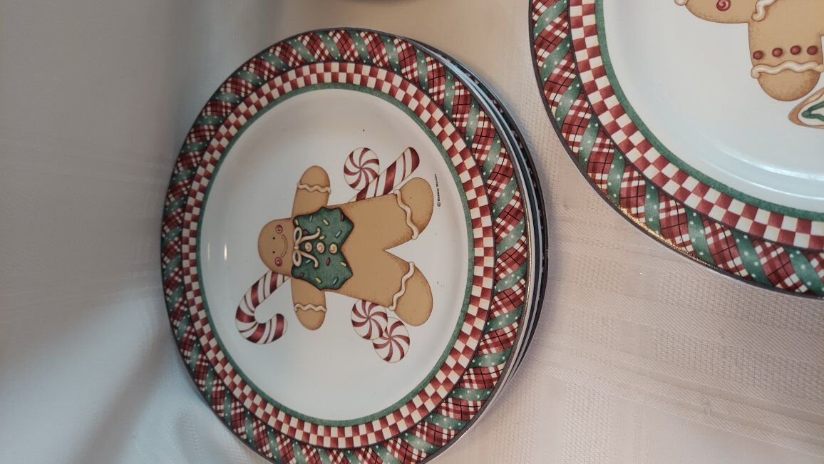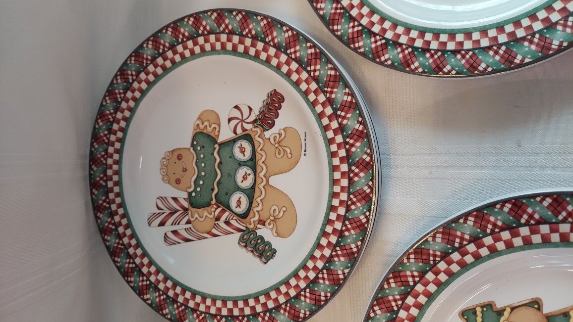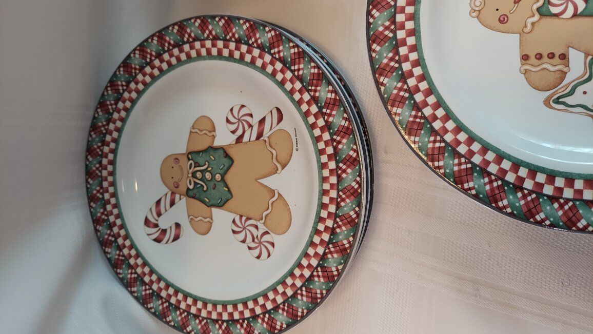 VenmoThis is a set of 10 Debbie Mumm gingerbread dessert plates. They are eight inches in diameter. There are 3 sets of 3 plates each and one single plate. Please look at all of the pictures. In\n The pictures you'll see bright red numbers that tells you how many plates are in each stack.