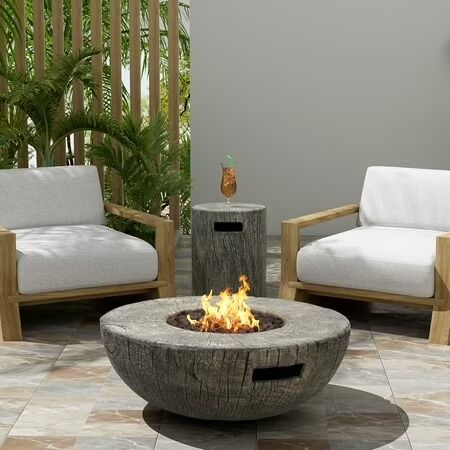 Christopher Knight Home 28" Patio MGO Propane Fire Pit Set, 30,000 BTU Round Heater with Tank Cover, Light Grey: Includes: One (1) Fire Pit, One(1) Tank Cover, One (1) Waterproof Cover Cover Material: Waterproof Fabric Material: Magnesium Oxide No Assembly Required Fire Pit Dimensions: 28.00" L x 28.00" W x 10.00" H Tank Cover Dimensions: 16.00" L x 16.00" W x 20.00" H
