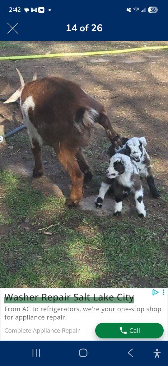, 1 YEAR GOLD/WHITE DOE READY NOW TO BREED , ALSO 3 YEAR GOLD D SOLD HER 3 GIRLS $450;;; BREEDER -- SOLD HER 3 GIRLS--$450--NO MORE BABYS NOW RETIRING - FREE REHOMING GOATS IF U MOVE OR HAVE TO GET THEM GONE FAST , I HAVE 2 ACRES OF PASTURE FOR THEM CALL BIG MIKE, OR MICHAEL JR AT 801-864-4104