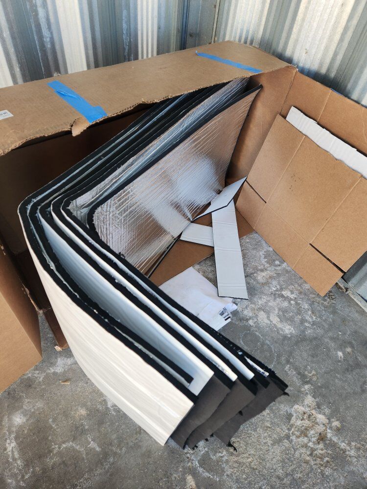 DETAILS 1/2in thick Adhesive Backed ( Peel and Stick) Foil lined High density, Light weight Moisture repellant FAA BURN CERTIFIED approx size 38"×54" SHEETs Cut to size/shape