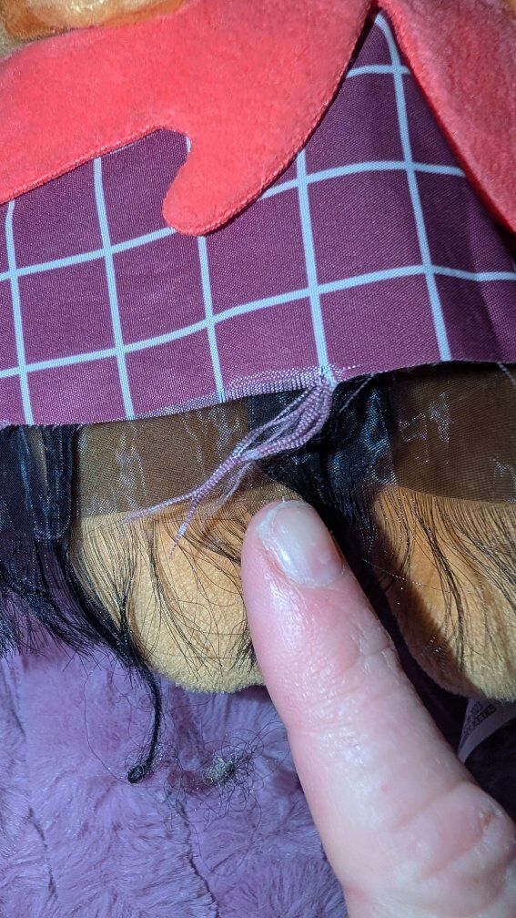 In great condition, But there is a little bit of fraying at the bottom of her skirt. Please see the picture.