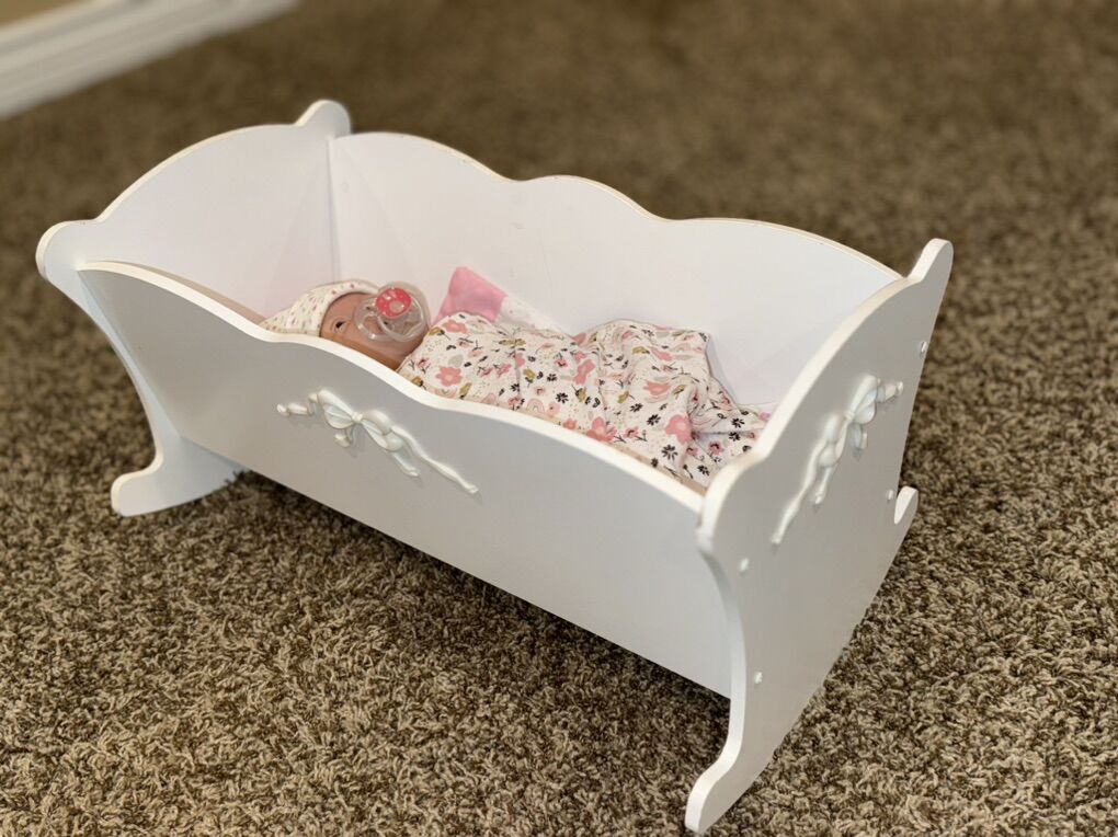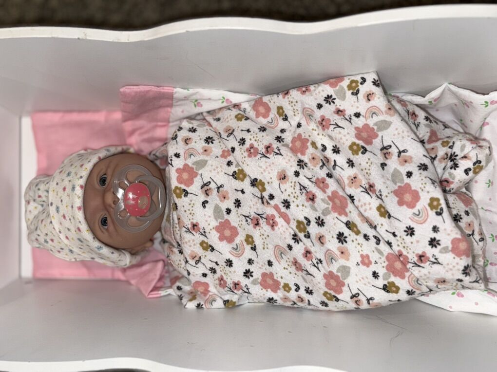 Comes with three outfits, pacifier, blanket, and cradle