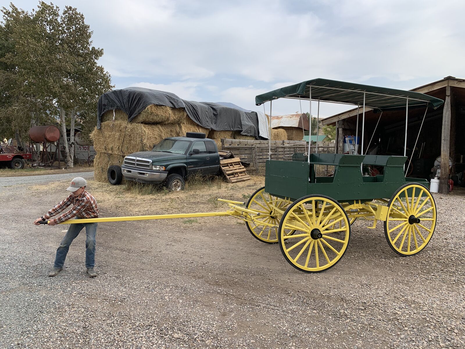Original mountain wagon running gear with very nice riding full spring suspension and mechanical brakes. Newer wheels, box and top. Good working condition. Also have a team of mules available. Asking $3,750 obo. Located at Cove Fort Utah