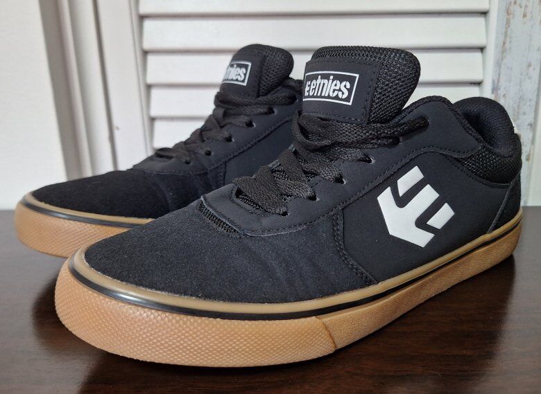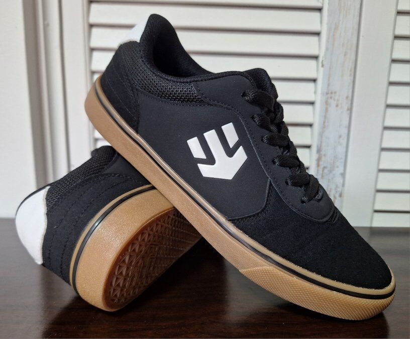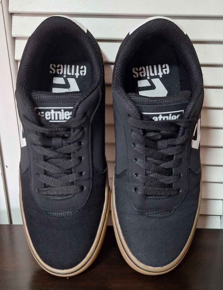 CashAppGet ready to hit the pavement with your skateboard and own it in these super clean black/white mens Etnies Axle Low Canvas Skate Sneakers. Size is US Mens 7.5. Got these for our son and he never wore them. 10/10 condition! Comes from a smoke and pet free environment. Please see photos for closer details, thanks for looking!