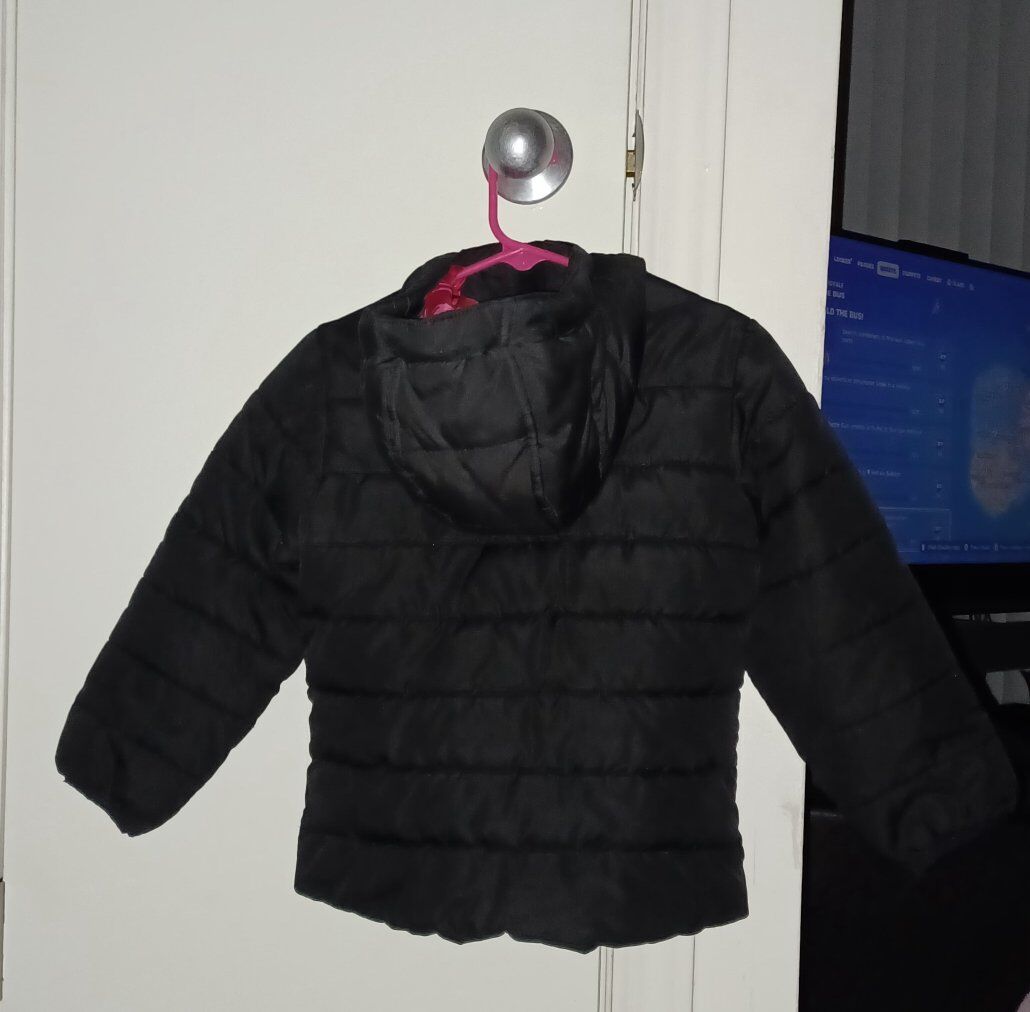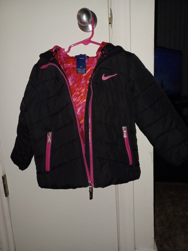 Girls black & pink Nike coat, size 4T. Has cute pink design inside coat & hood.