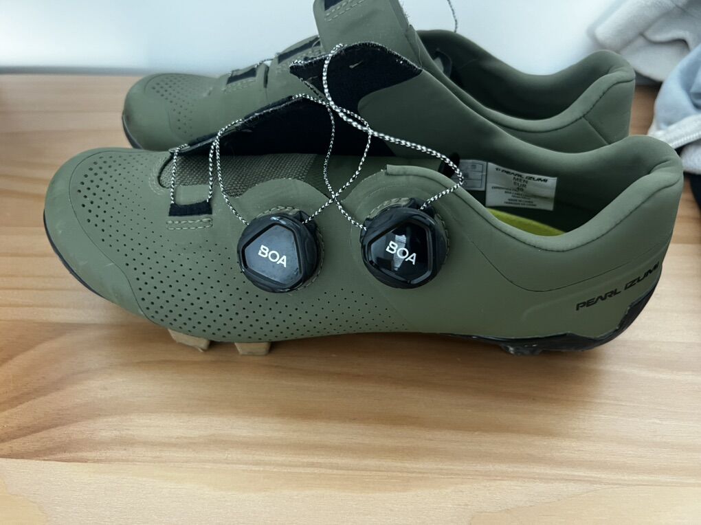 Pearl Izumi expedition pros Didn’t have these for long but the bottom Is scratched up a bit from walking in a gravel race