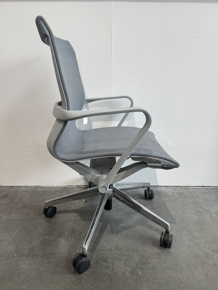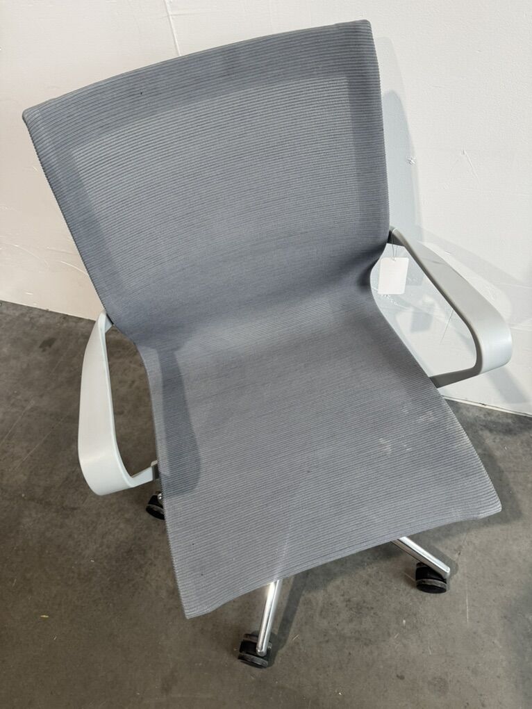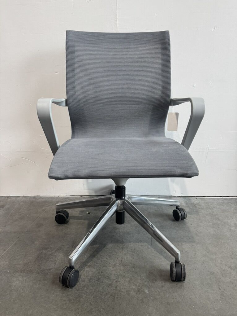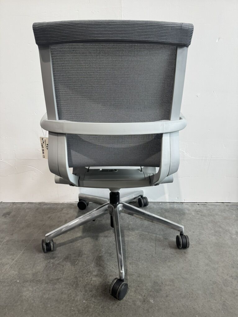 Rolling, adjustable height, mesh seat office conference chair by Friant. 1 chair available.