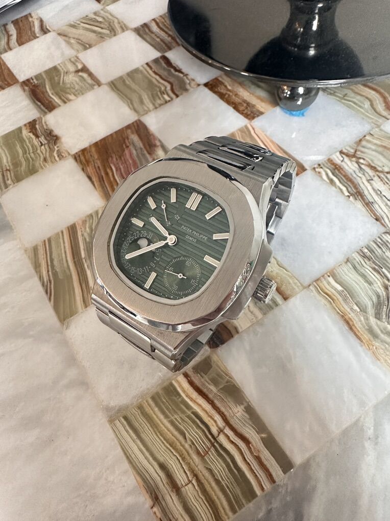 ZellePatek Phillipe 1:1 super clone watch for sale Prestine condition Automatic movement Green chronograph dial Skelton back