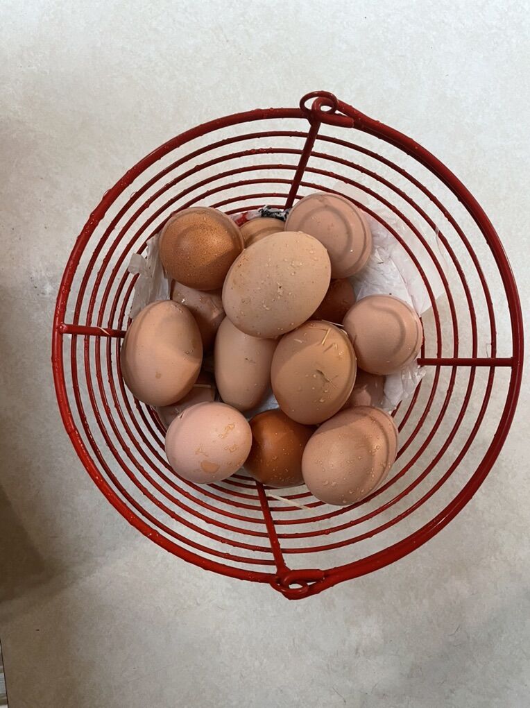 VenmoEggs gathered daily from healthy and well fed hens. I’m getting a dozen eggs a day. I do not wash them other than rinse off dirty eggs with cold water