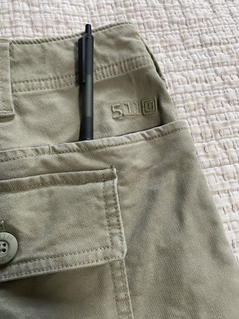 Has multiple pockets. I used the pen to show where there are pockets behind the back pockets.