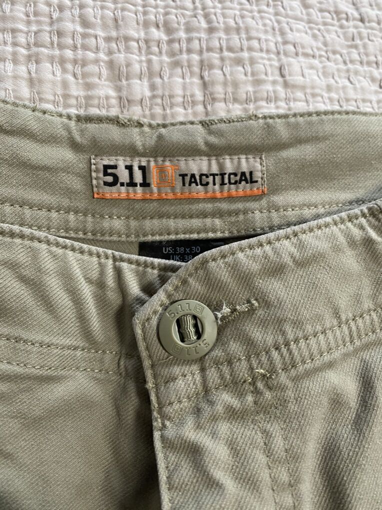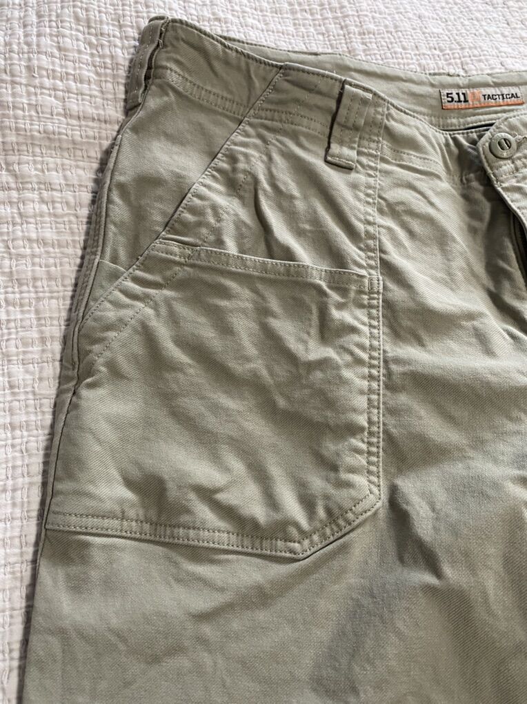 Jean fabric. These are a greenish khaki. I wore them less than ten times.