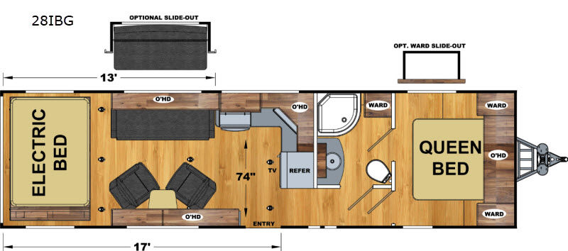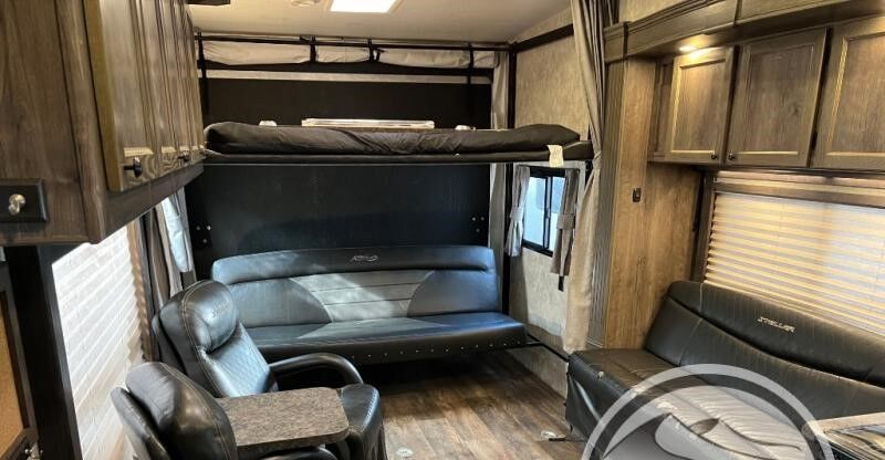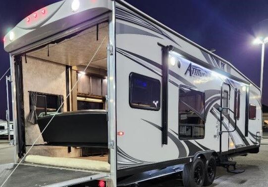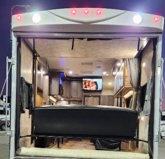 Eclipse Attitude Wide Lite toy hauler 28IBG, Electric Beds in back, Two Lounge Chairs, Bathroom with Two Doors, 200 watt Solar Panel, private front bedroom, dimensions of garage opening: 77 1/2" high x 74" wide x 16' long, sofa, 40 gallon fuel station, water tank heaters underneath to keep the water tanks from freezing in the cold weather, 150 gallon fresh water tank, dish satellite, upgraded axle springs, tires and wheels, 12 volt charger by the stairs for plug in cooler, 2 7 gallon propane tanks, inside/outside thermostat, 2 tv's, ramp door with cables that have a 3,000 lb rating, tons of new LED lights, solid surface counter top, a drop range with glass cover, 14,000 pound equalizer hitch, carpet kit, plastic screen enclosure for the back patio, In the bedroom you will also find a USB charger and more! This trailer is in immaculate shape,lighted flag pole remote, and many more extras. You will not find a cleaner trailer!
