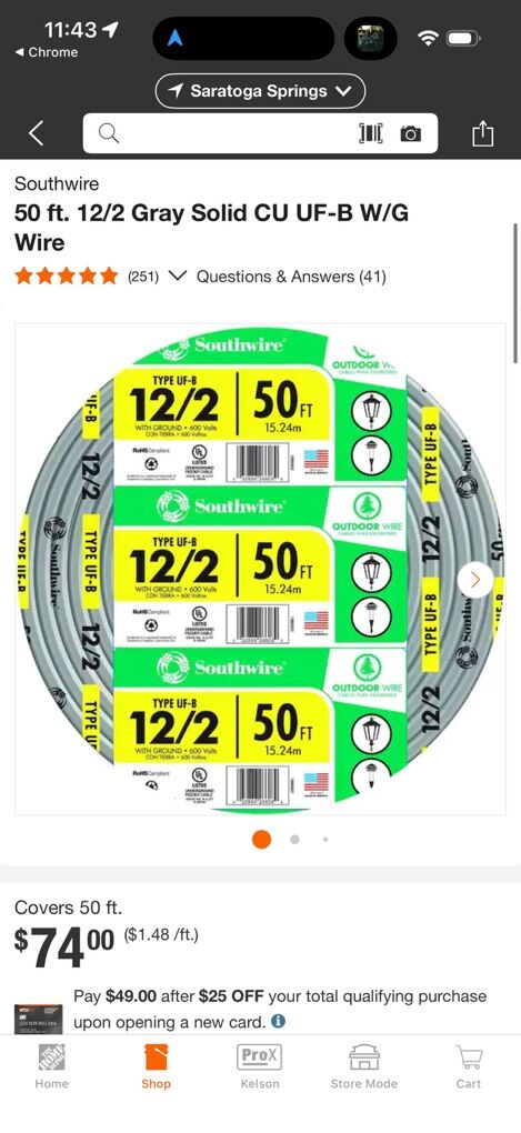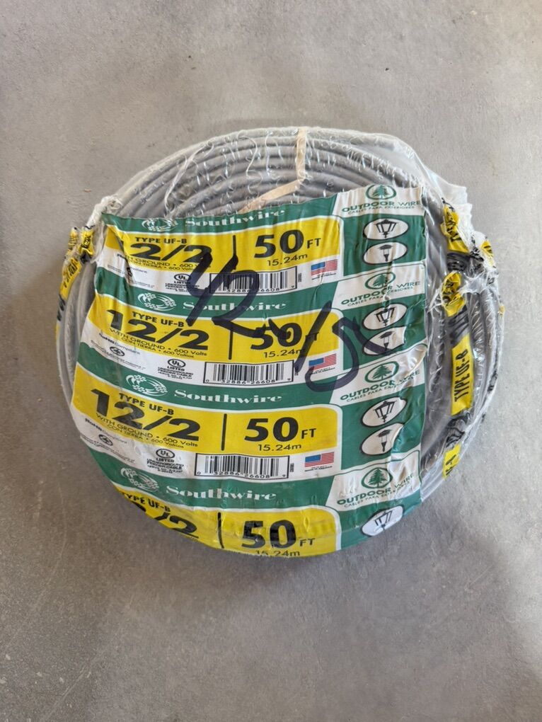 12/2 UF-B Burial Rated Exterior Romex. I have a 100 footer and a 50 footer.