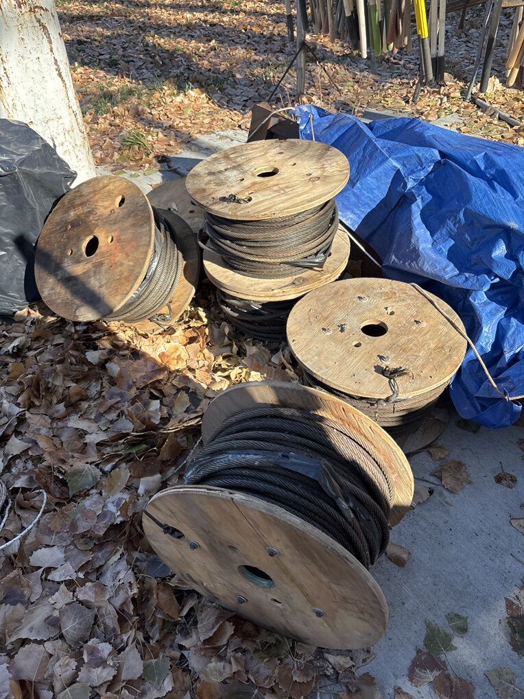 I have six rolls of this steel cable and what it has is  eight 1/16 or 1/8 wrapped by eight 3/ 16th cables , I have six rolls that vary in length as follows 205 feet 122 feet 147 feet 222 feet 196 feet and the last is 220 feet long. Would work great for a railing on a construction site or what have you it's in real good condition it's been covered out of the weather and it has oil it was coded with oil when I first put them away in the spring