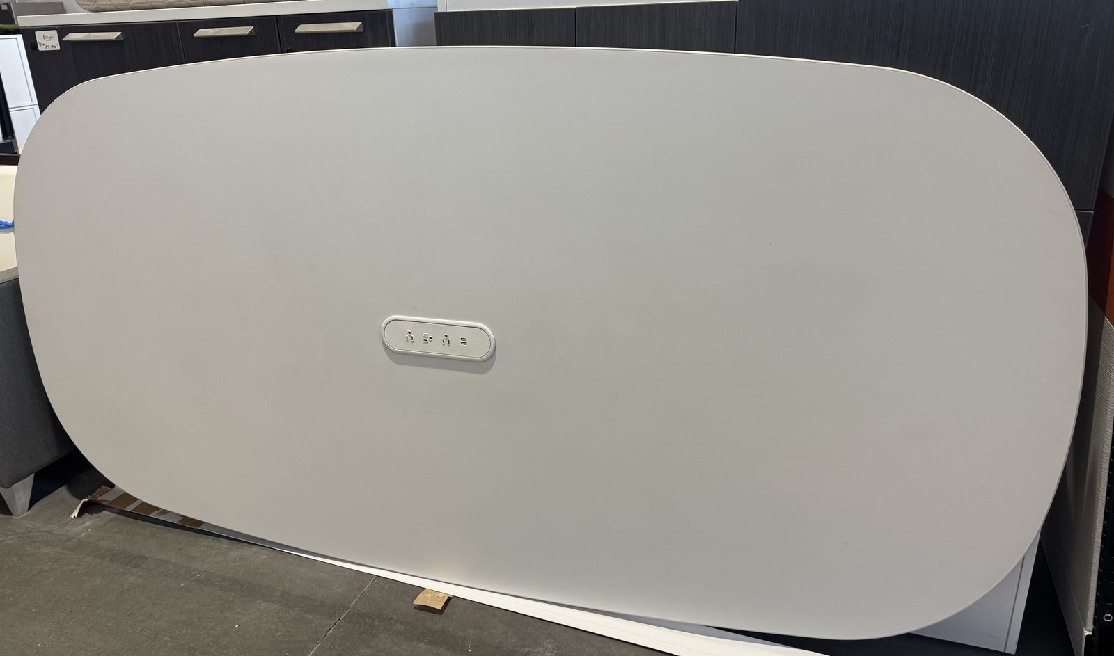 96” long conference table, rounded corners with power by Herman Miller. 1 table available.
