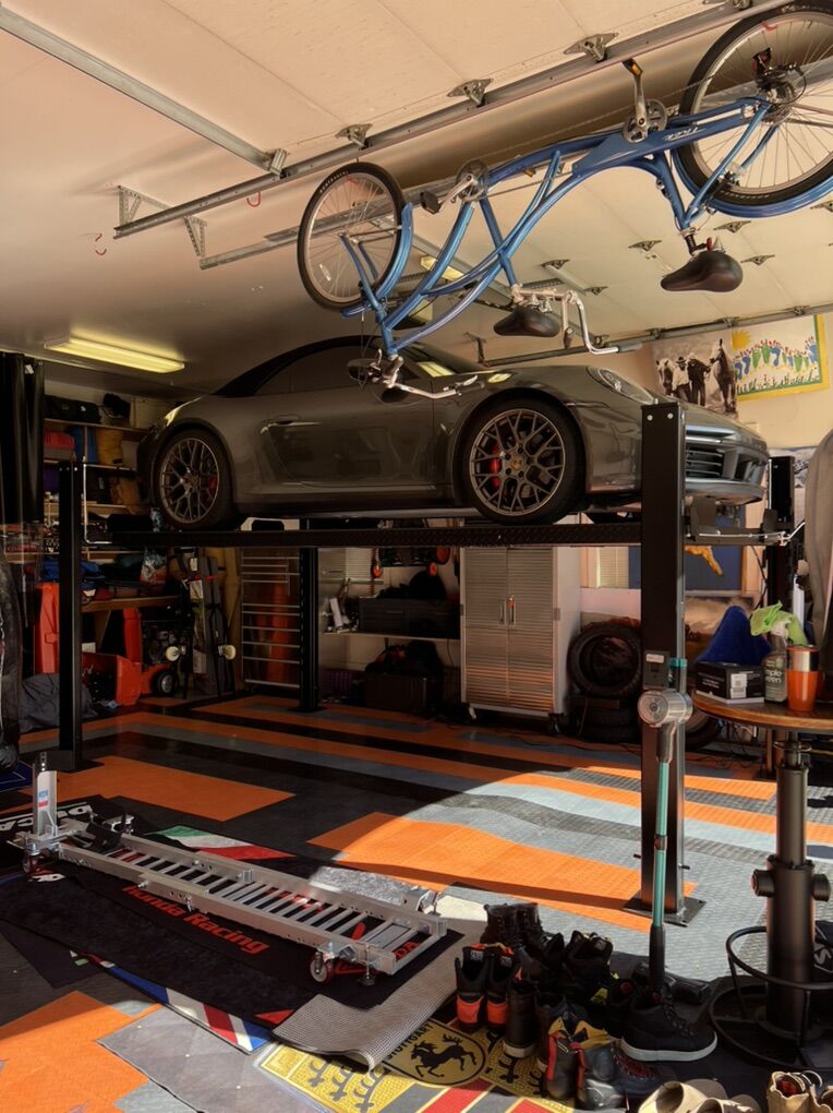 5ft 9” tall for our standard lifts, we recommend having a +10ft tall garage, but it depends the height of your cars. XL lifts are over 6ft 6” in lifting height clearance! We also have taller options as well.