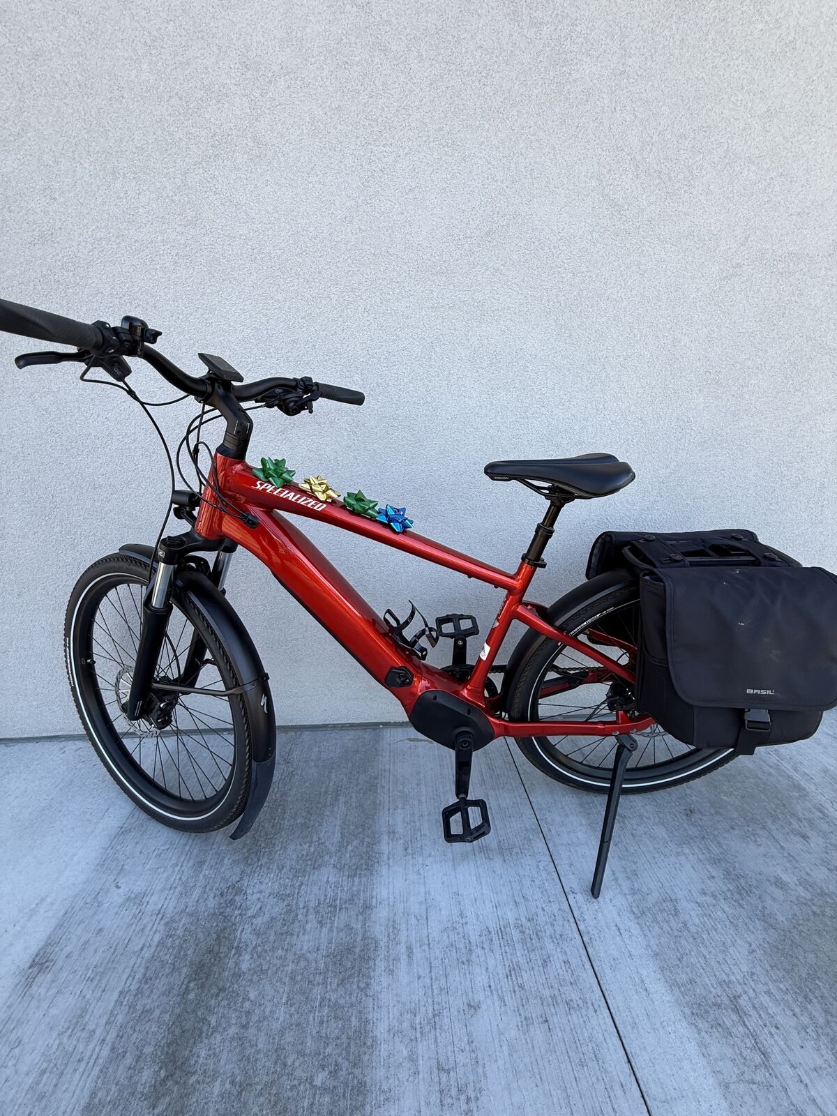 Bought new for a friend. Only ridden 200ish miles. Mint condition. Comes with super sweet waterproof pannier cargo bags. Size Large (good for someone 5'8"-6'2" ish)