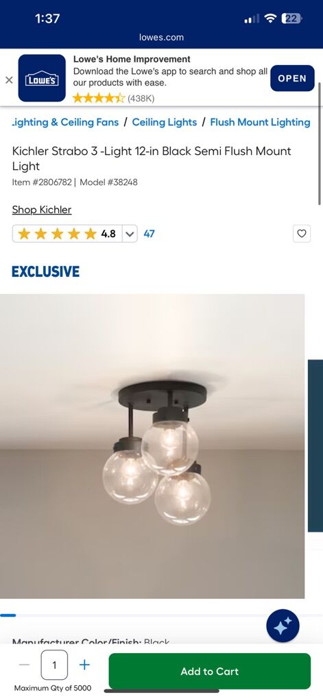 VenmoKichler Strabo 3 -Light 12-in Black Semi Flush Mount Light