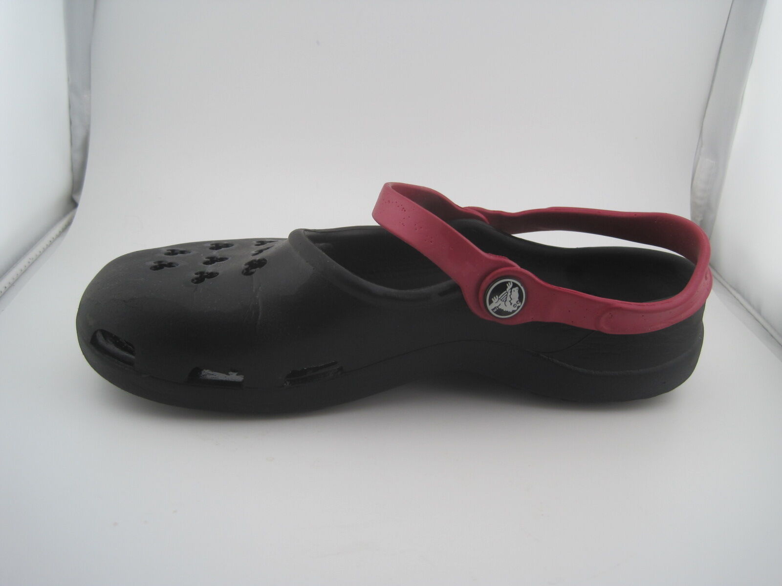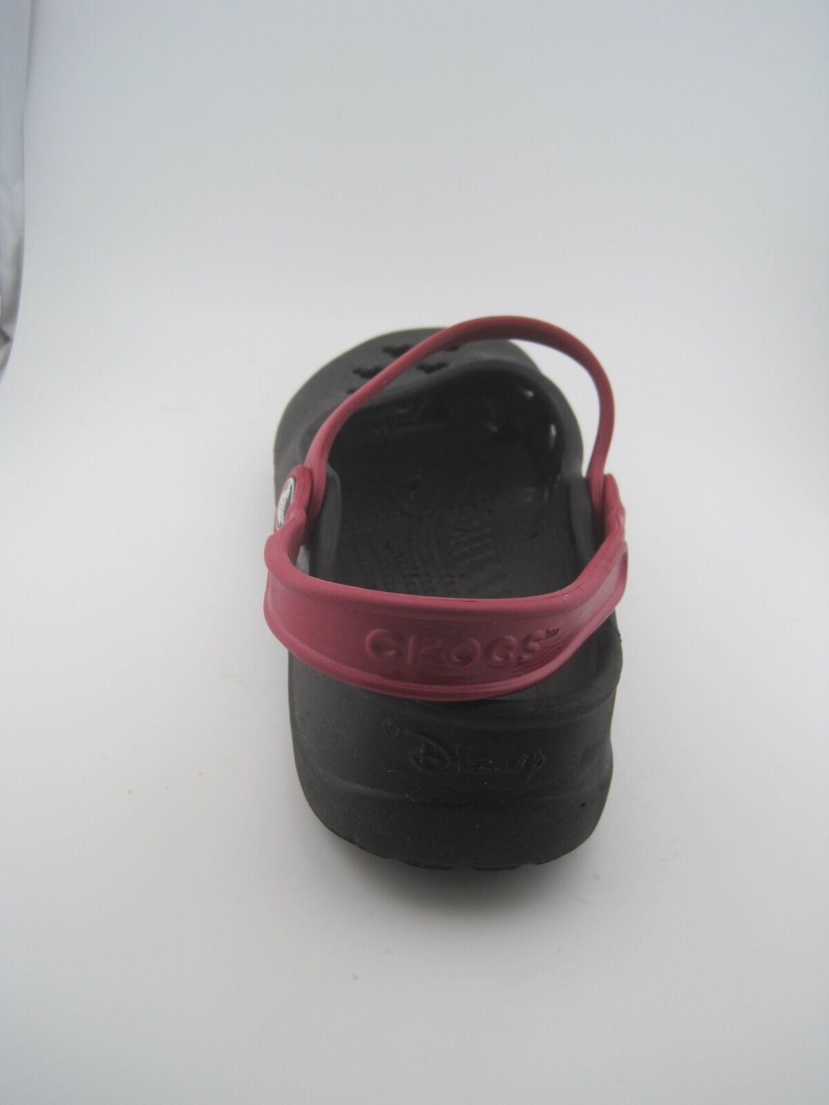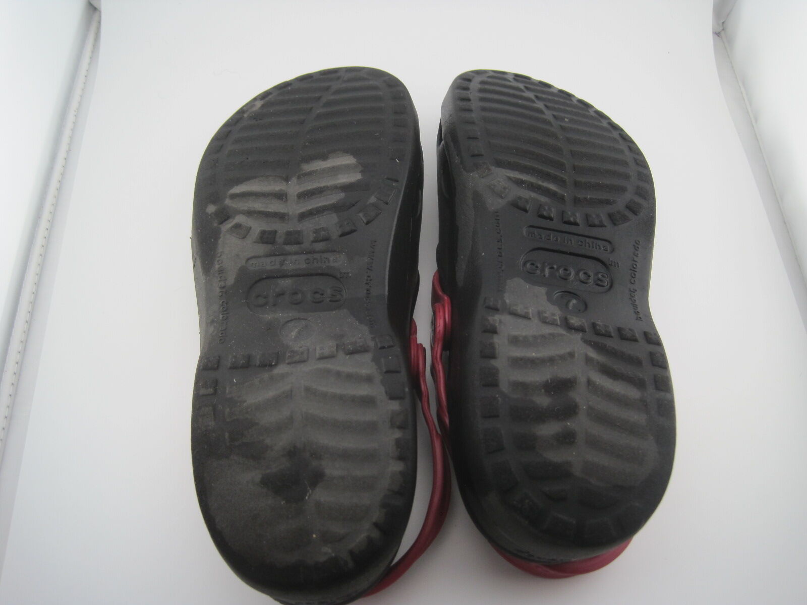 The Crocs Classic Clog Mickey Mouse Black Red Slip On Sandals in Women's Size 7 offer a comfortable and stylish option for casual wear. These sandals feature a slip-on design with a rubber outsole for durability and a lightweight feel. The black color with red accents and Mickey Mouse character design add a fun touch to the overall look. Perfect for summer, fall, and spring seasons, these sandals are easy to wear and provide both style and comfort for everyday use.