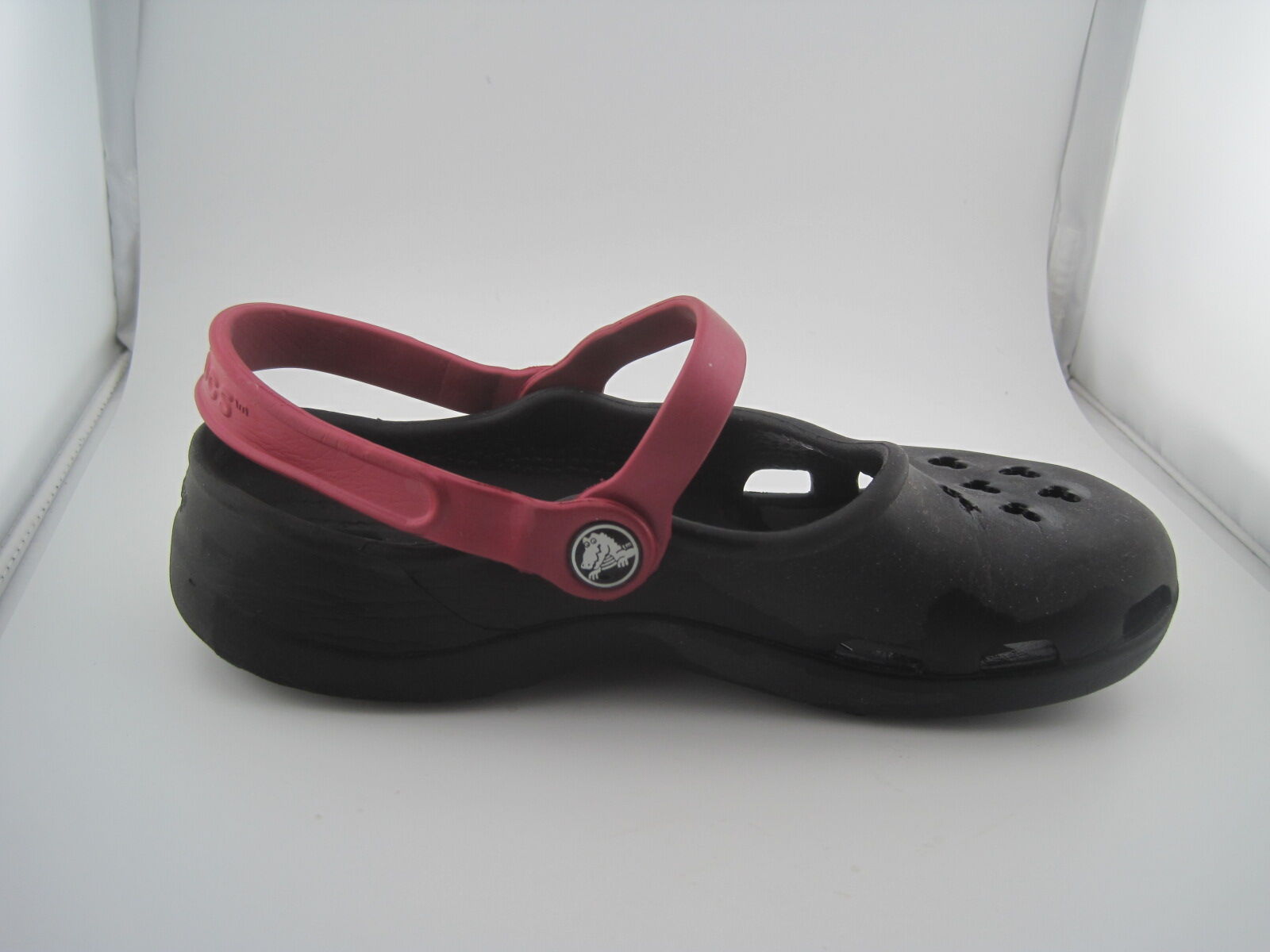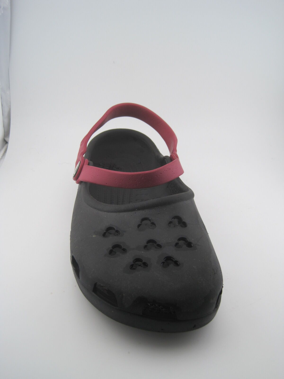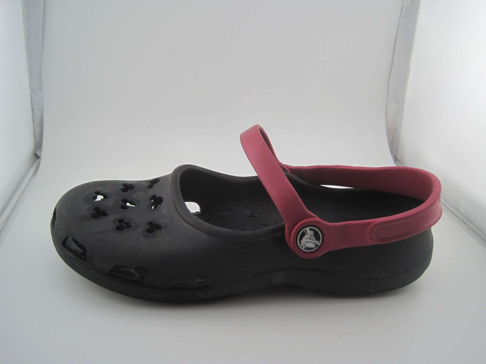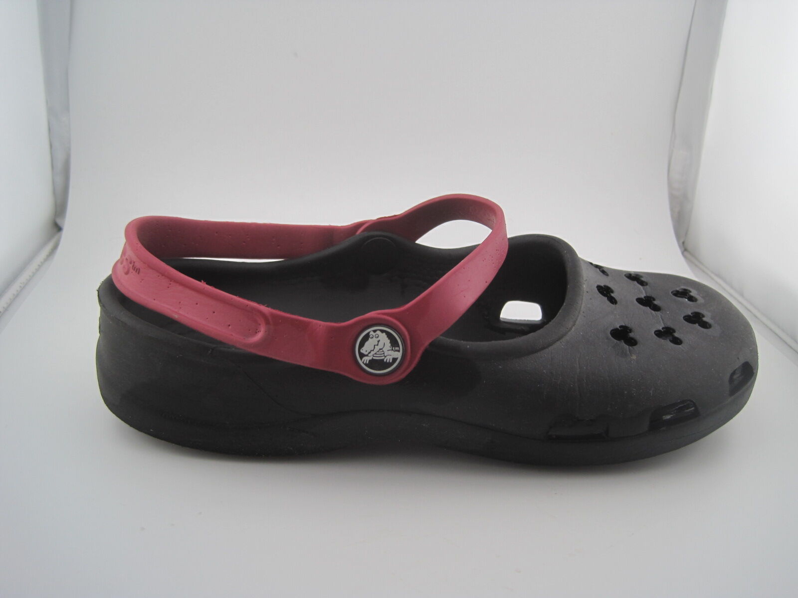 The Crocs Classic Clog Mickey Mouse Black Red Slip On Sandals in Women's Size 7 offer a comfortable and stylish option for casual wear. These sandals feature a slip-on design with a rubber outsole for durability and a lightweight feel. The black color with red accents and Mickey Mouse character design add a fun touch to the overall look. Perfect for summer, fall, and spring seasons, these sandals are easy to wear and provide both style and comfort for everyday use.