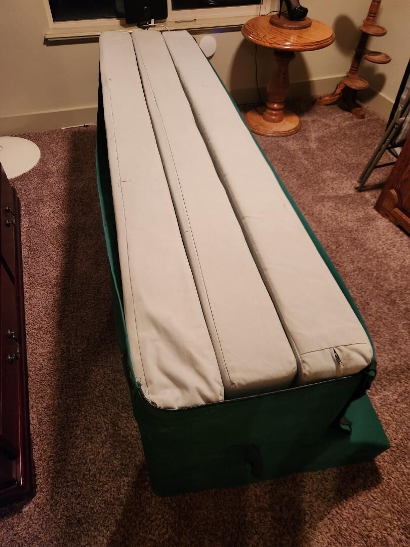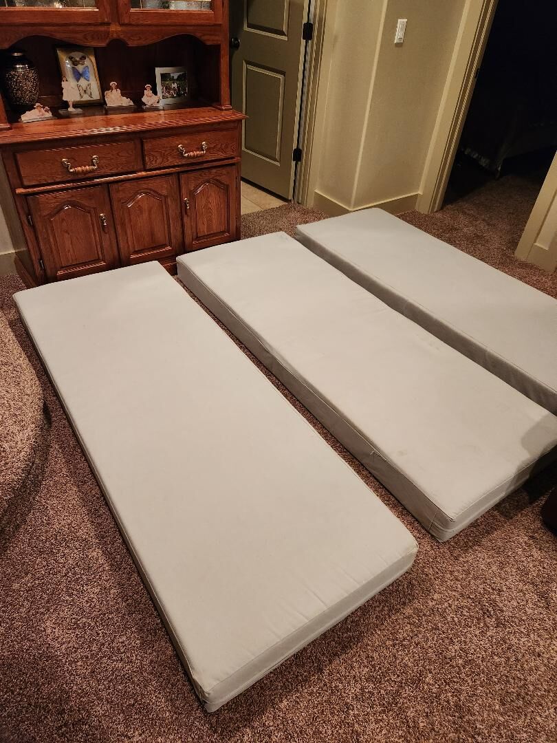 GooglePayI have for sale a very unique Couch that converts into three sleeping pads. The sleeping pads are 6” inches thick by 28” wide by 77” long. So they make into three very nice, comfortable beds. This has handles built into each end to make it VERY easy to move. This works great for any camper, 5fth wheel or for a houseboat to use on the top deck.