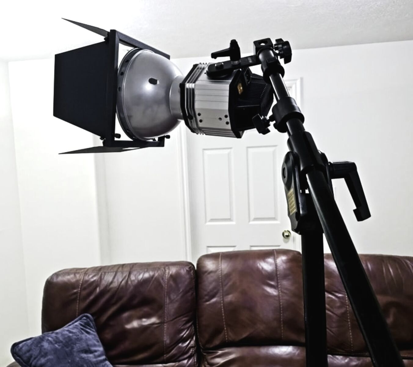1 - Sturdy adjustable C-lamp stand with castors on 35” legs - three sections - up to 7ft height with up to 6ft Crossbar Boom