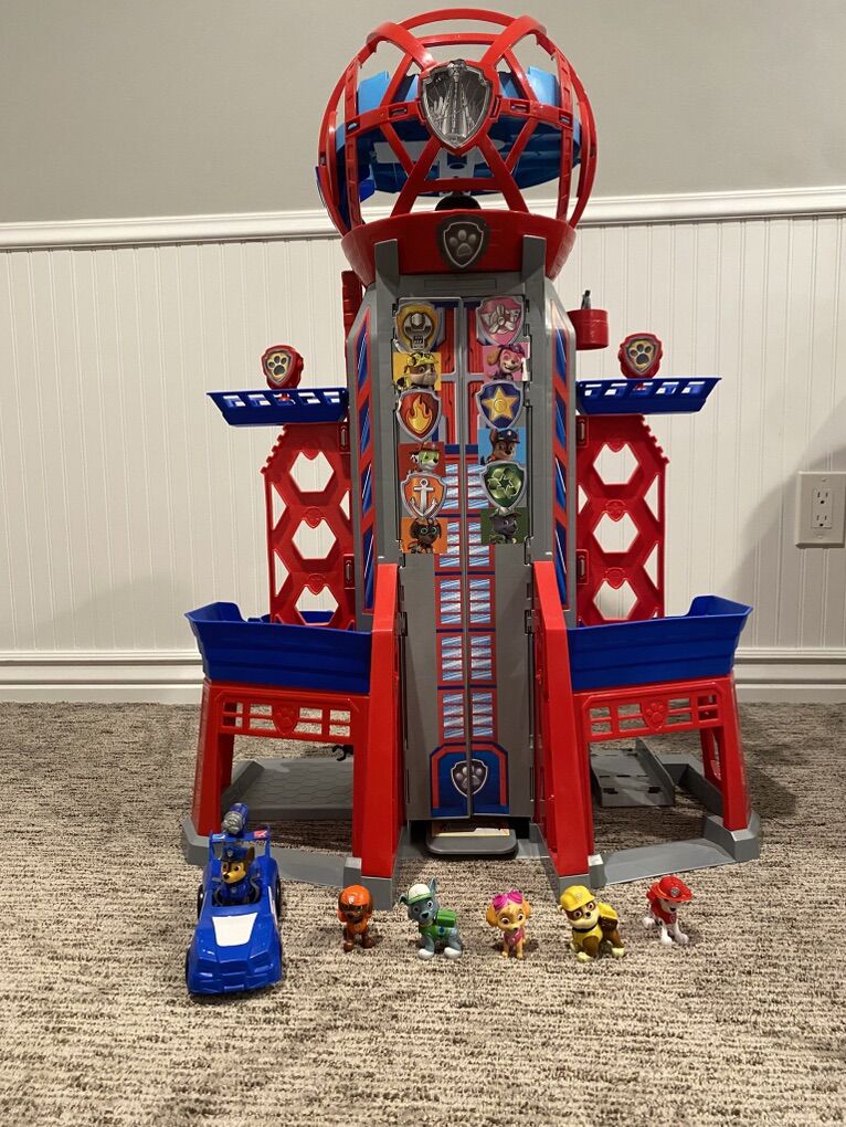 VenmoSpin Master Paw Patrol Ultimate City Tower with all the characters. Over 3 feet tall. Has a minor bend in the front but everything still works as it should.