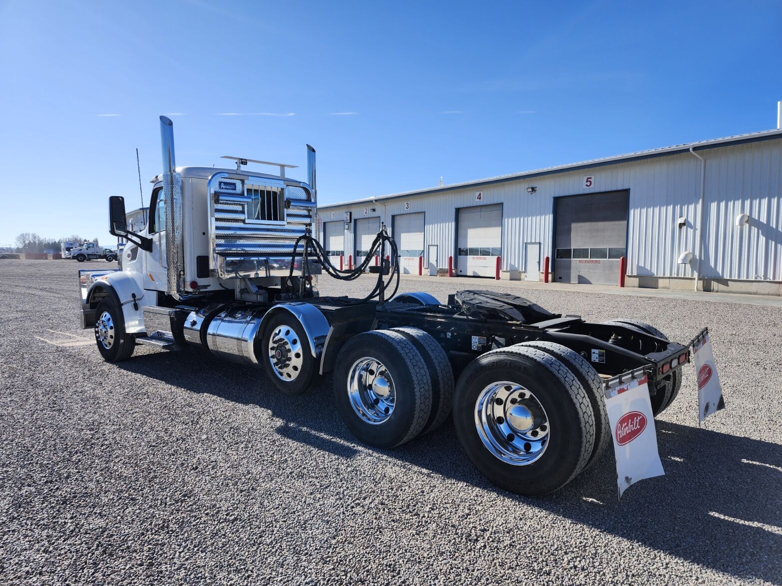 2 line wet kit, 13,500 steerable lift axle with 9' spread, Sliding 5th wheel, 13,220 FA- 46K RA, 3 way lockers, 166" Cab/trunnion, Aluminum headache rack, Pete Air Trac suspension, Allison 4500RDS transmission, Cummins ISX15 565HP, Jake brake, 4.30 ratio, Front and rear disc brakes, Brush guard, Cruise, A/C, Tilt wheel, Power/heated mirrors, Power windows, Air ride cab, Engine block heater, 2021 Peterbilt 567