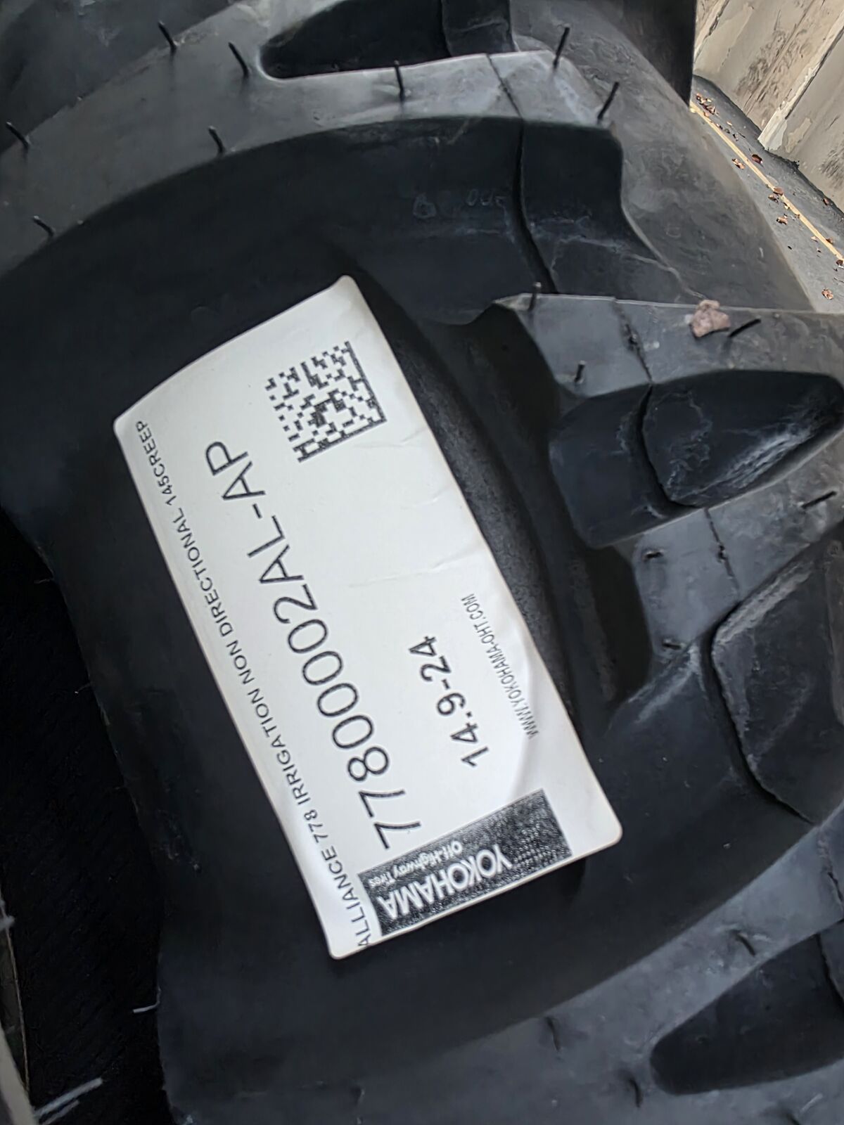 I have several Pivot Tires by Yokohama Alliance 14.9-24 Model 778 Agricultural Irrigation System Tires NEW for sale. Cash only. No scammers, please. 801-699-6542