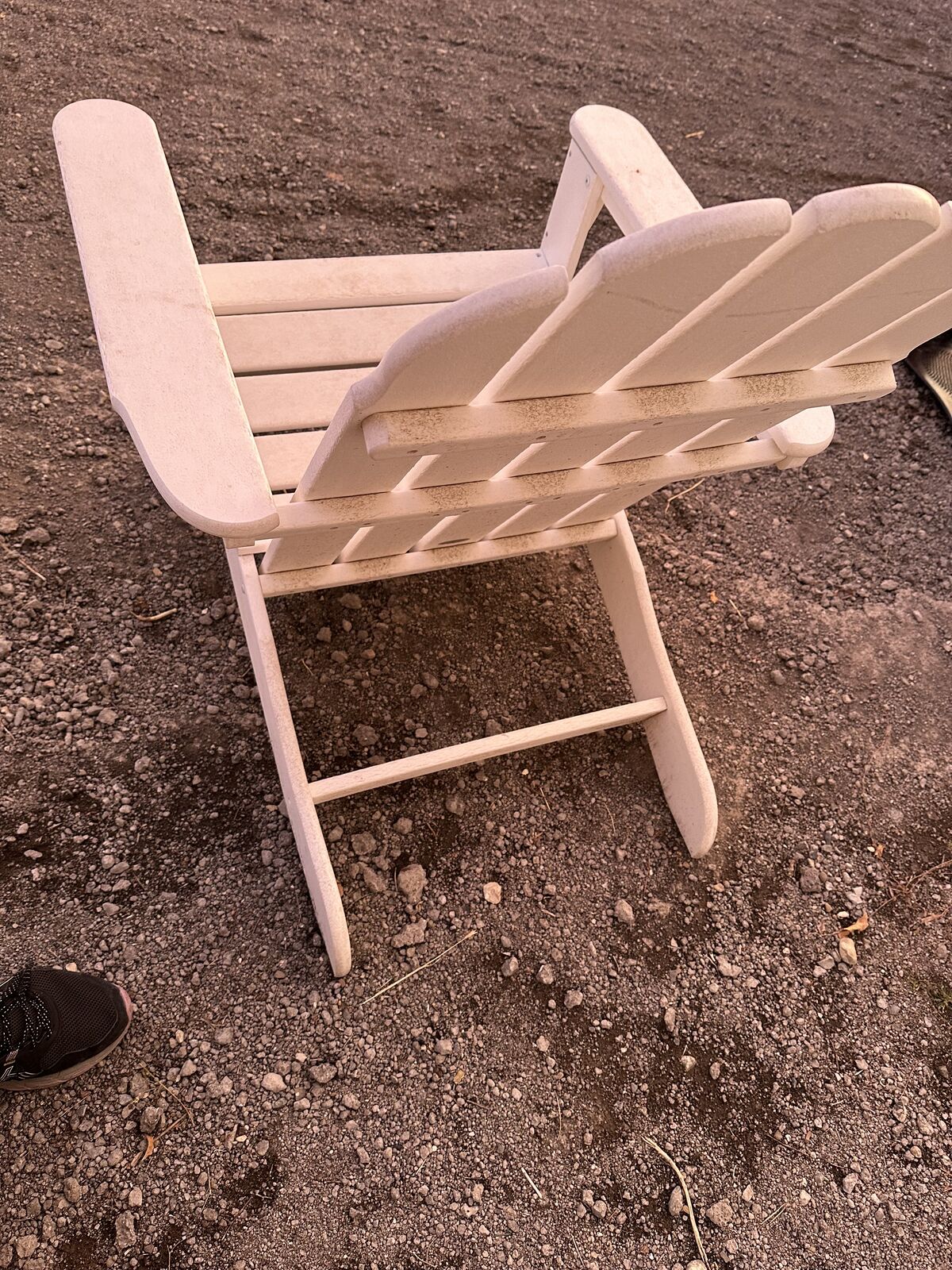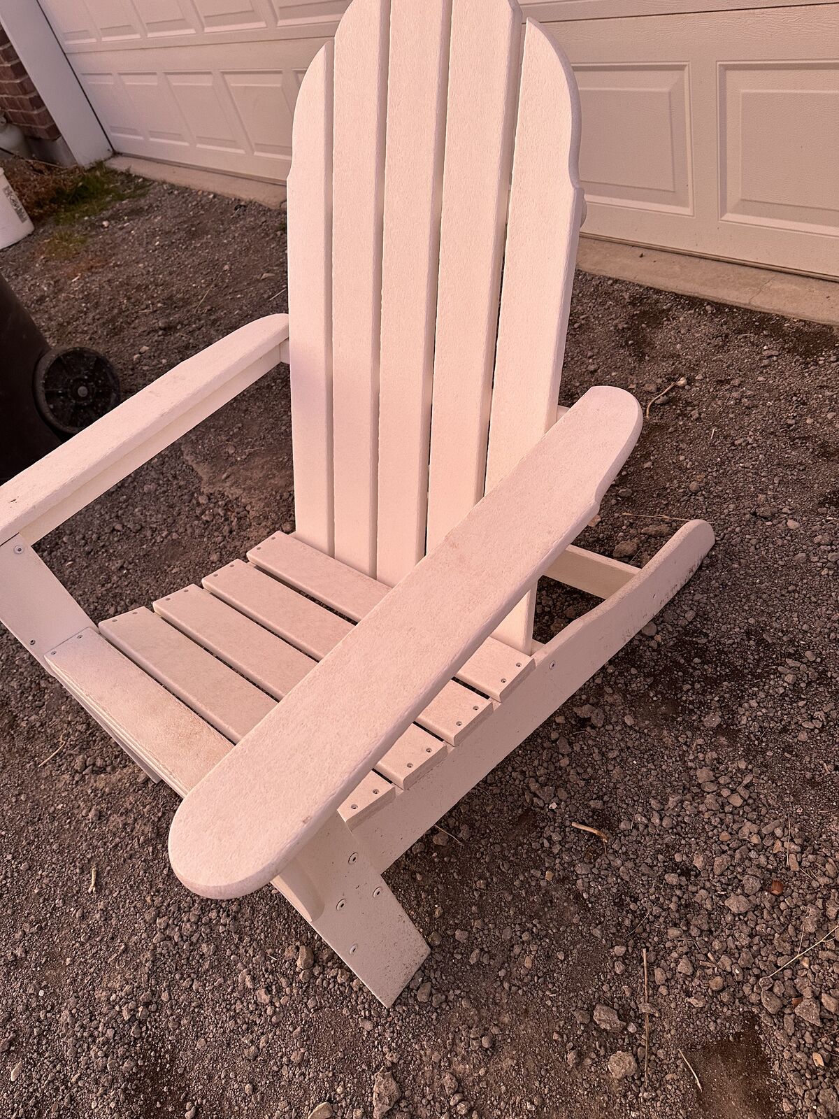 Used but in great condition. White in color. Does not fold. More of a heavy duty chair very good quality and very sturdy. Nothing wrong with it. Retails for several hundred $.
