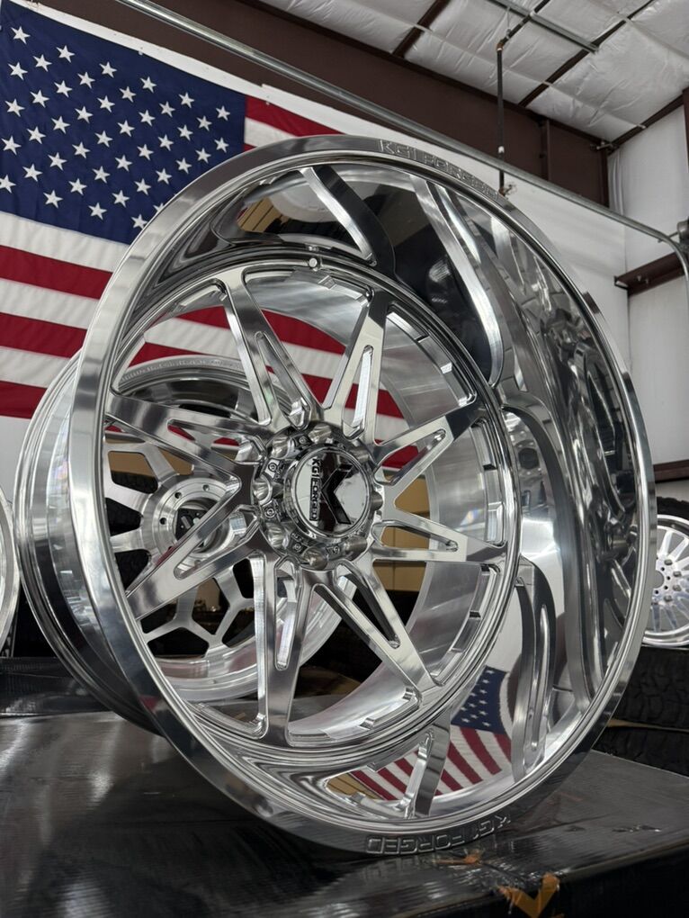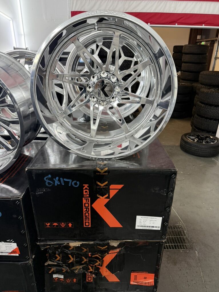 Brand new in the box set up 26x16 kg1 “kala” billet forged aluminum wheels. Mirror polished finish, these are brand new in the box, -101 offset.