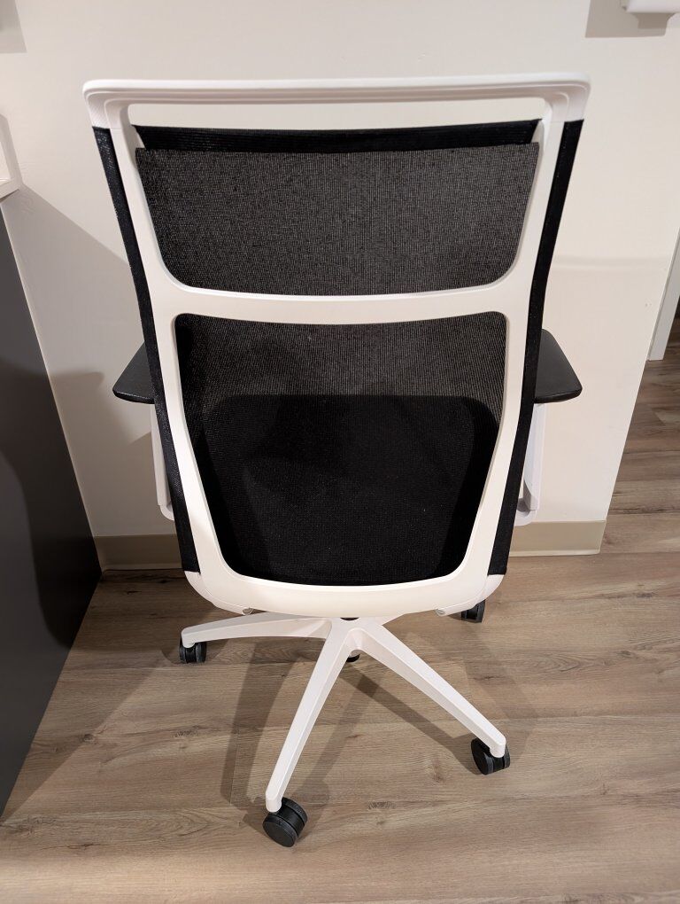 GooglePayHexyHigh Back, Standard Synchro, Height Adj. Arms, Upholstered Seat, 5-Star Nylon, White Nylon Base, Mesh Back, Onyx Mesh, White Frame, Knock Down